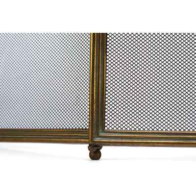 Изделие изготовлено из бронзы и латуни методом литья и штамповки. Латунная сетка с тонким плетением гармонично сочетается с массивной бронзовой рамой, что придаёт изделию изысканный внешний вид. Размер экрана составляет 39,7 × 76,5 × 1,8 см, что делает его подходящим для использования в каминах различных размеров.