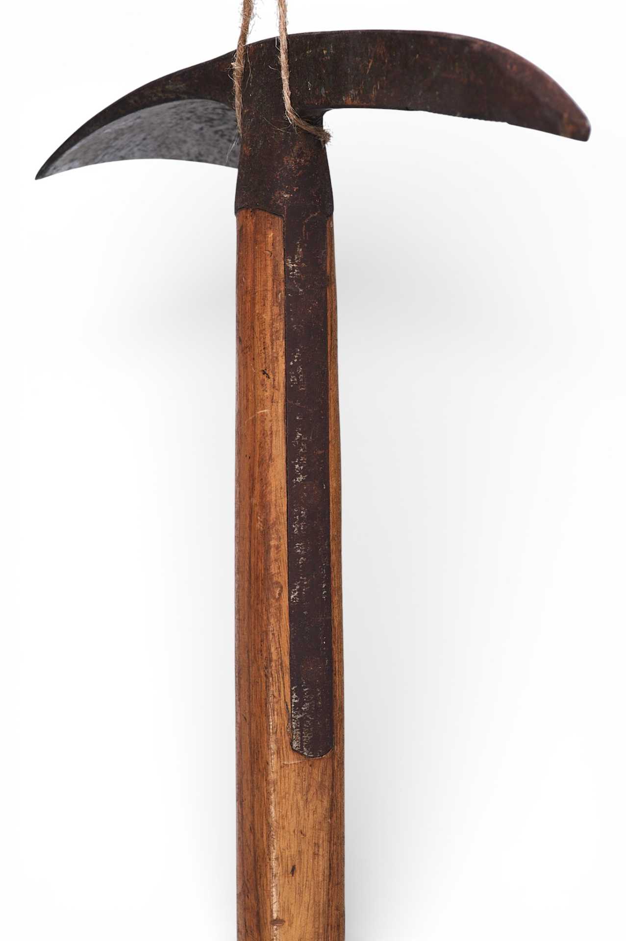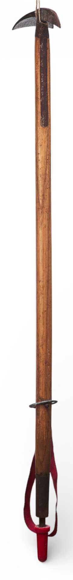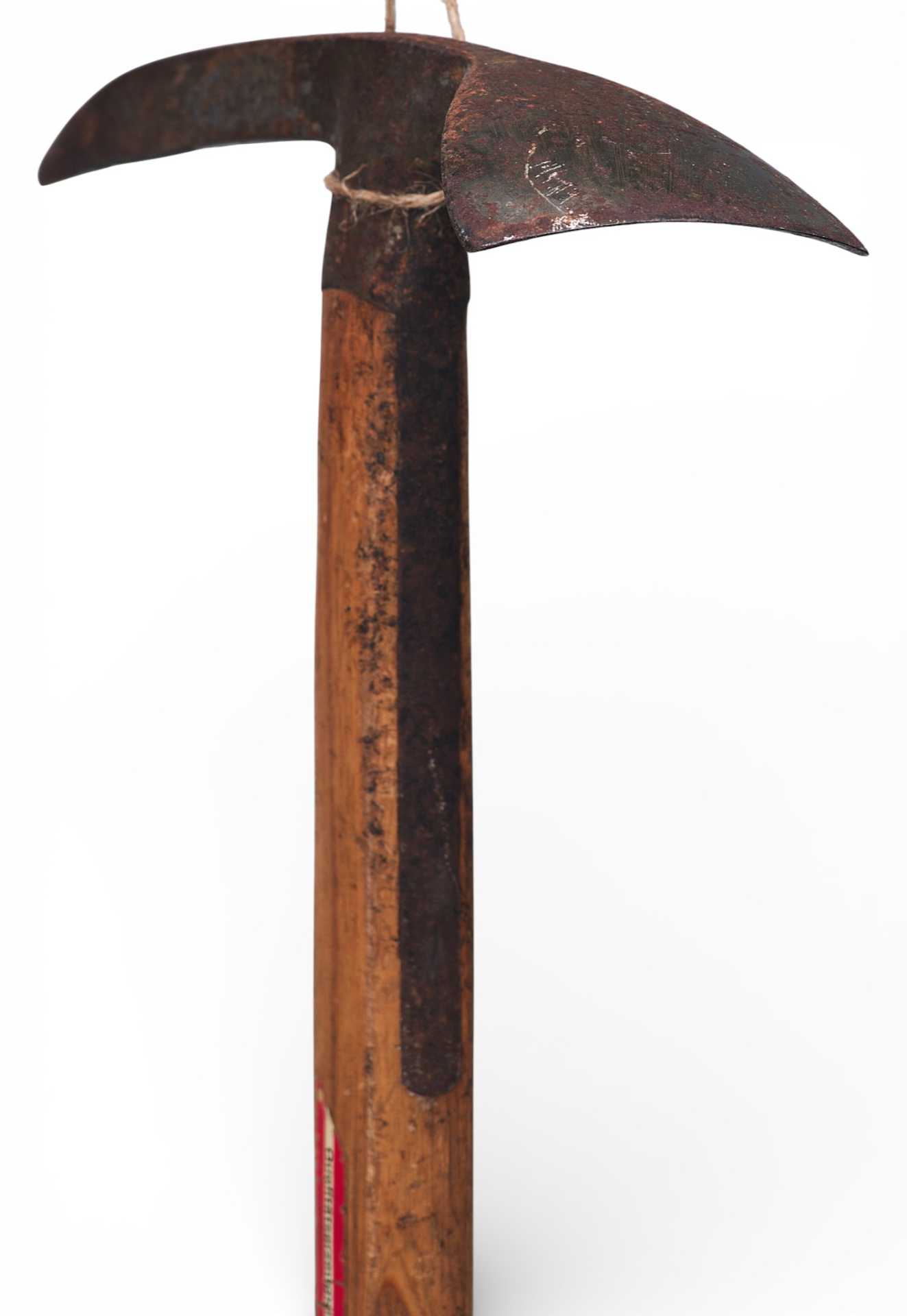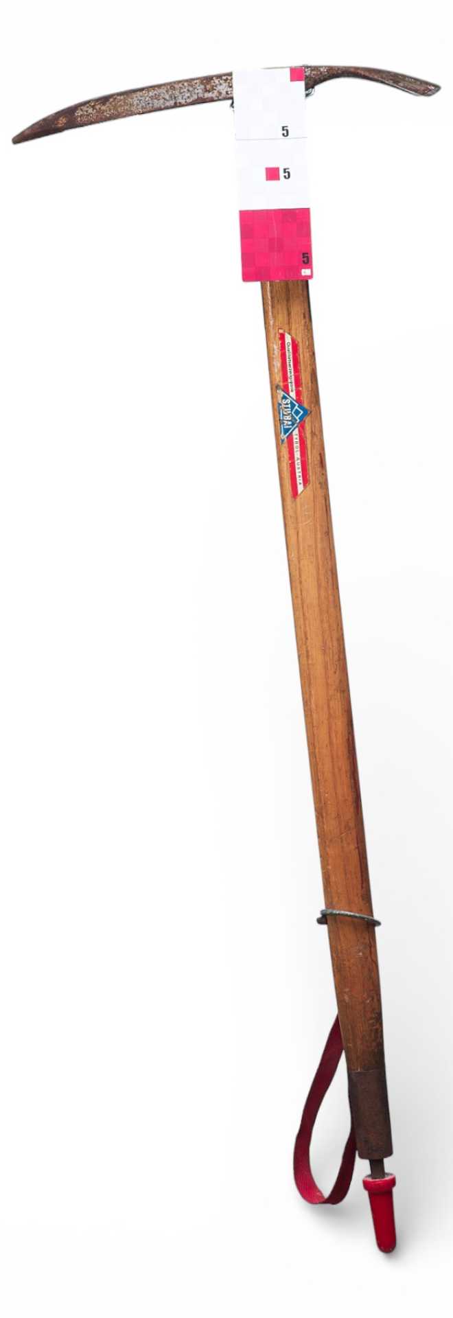 Ледоруб На металлической головке клеймо: «Stubai Aschenbrenner Führerpickel Ges. Gesch/Made in Austria». На рукоятке наклейка: «Qualitätserzeugnisse 81WAI Tyrol Austria». Продукция с такими клеймами изготавливалась до 1945 г. в Тироле, в фирме «STUBAI». На головке ледоруба указана фамилия легендарного австрийского альпиниста Петера Ашенбреянера, В годаВтороймировойвойны (с 1940 по 1945 гг.) Ашенбреннер обучал горных стрелков и горных проводников для армии. За это время он провел более 50 ооучающих курсов, завершившихся без единого несчастного случая. Австрийская фирма Stubai обладает вековыми традициями кузнечного производства и ручной инструмент Stubai (Штубаи) заслуженно пользуется признательностью кровельщиков и жестянщиков во всем мире. ісузночное производство и традиции обраоотки стали в регионе Шубяйской доплины относятся к XIV веку. В XVII веке здесь работало 47 кузниц, продукция которых славилась своим
