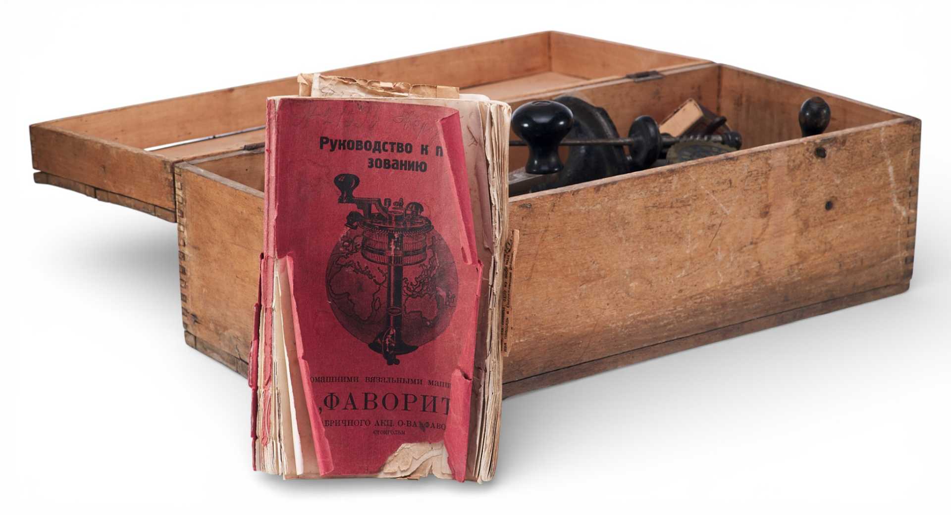 Вязальная машина ^Фаворит” в деревянном ящике оригинального изготовления, с руководством по пользованию. Клеймо