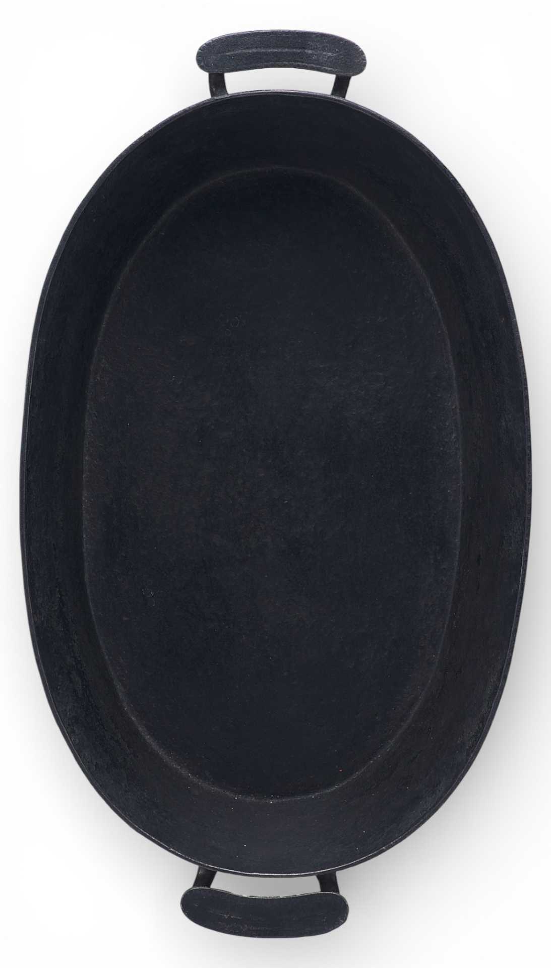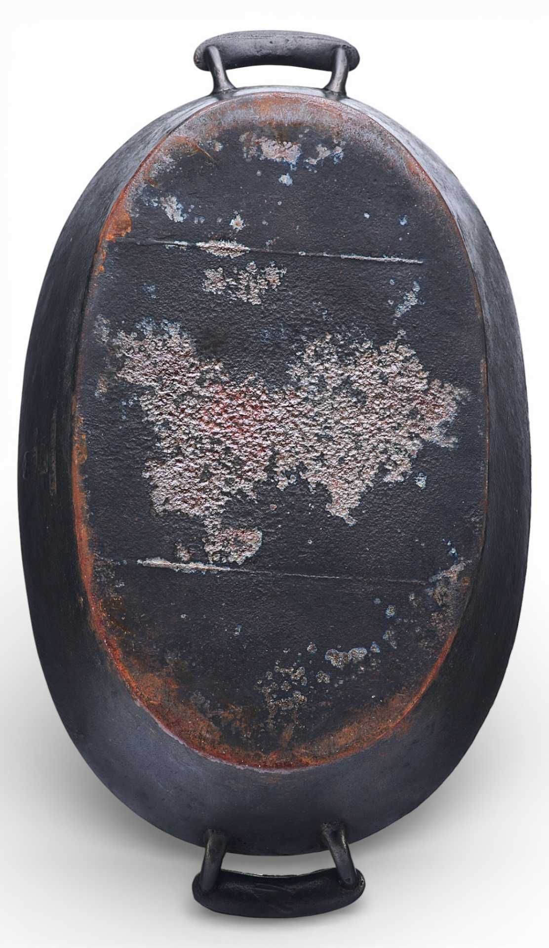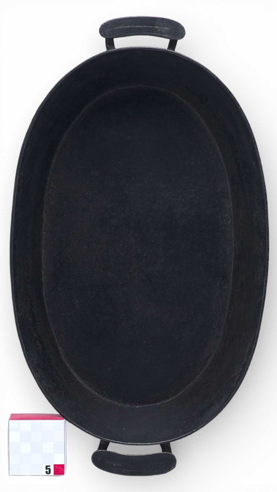 Гусятница с ручками. На краю стенок утятницы клеймо: двуглавый орел - герб Российской империи, «КАС.З. 1908» - клеймо