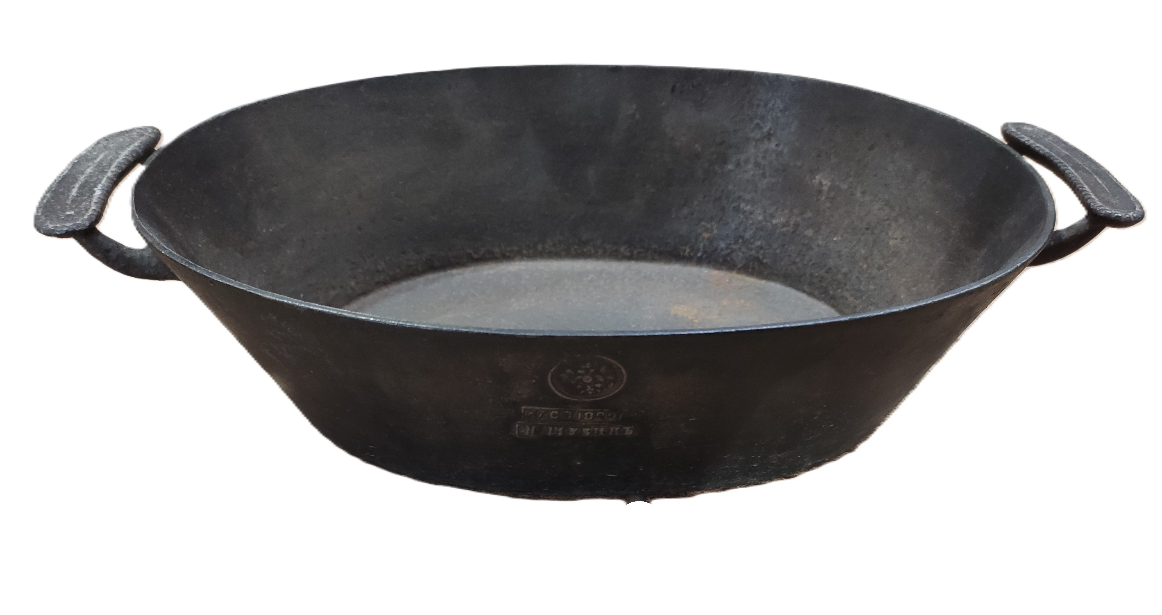Гусятницас ручками. На краю стенок утятницы клёймо: двуглавый орёл - герб Российской империи, «КАС.З. 1899» - клеймо производителя и дата изготовления, «Н. Шубинъ» - клеймо литейщика. Утятница (также гусятница, в петербургском говоре латка) -специализированная толстостенная металлическая (ныне также из жаропрочного стекла или керамики) кухонная посуда, обычно удлинённой формы, с крышкой. Утятницу применяют для тушения мяса, овощей и птицы (отсюда название). На выставках в Санкт-Петербурге (1870), Москве (1872) и Вене (1873) среди представленного литья промышленных выставок всегда выделялись ваграночные изделия Каслинского завода. Наибольшее внимание привлекала первосортная русская кухонная посуда, которой тогда производилось до 12 тысяч пудов в год. Имеющиеся отзывы в печати тех лет очень скупы, но дают некоторое представление о каслинских изделиях: «Чугунное литье (посуда)... заводов Расторгуева очень удовлетворительна...». В 1870 г. завод получил большую золотую медаль Всероссийской мануфактурной выставки в Санкт-Петербурге.