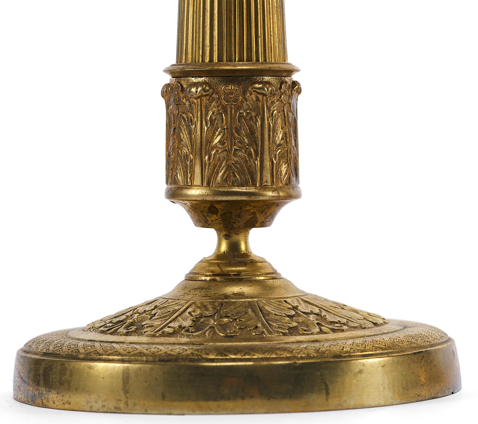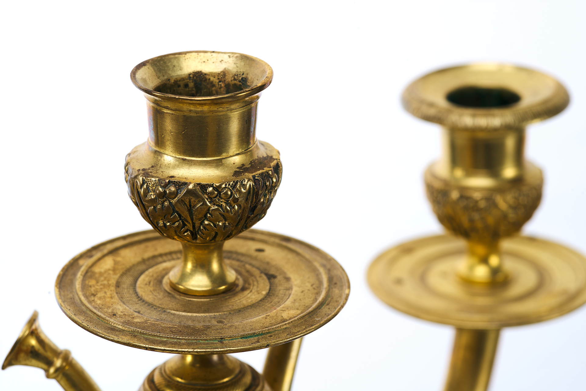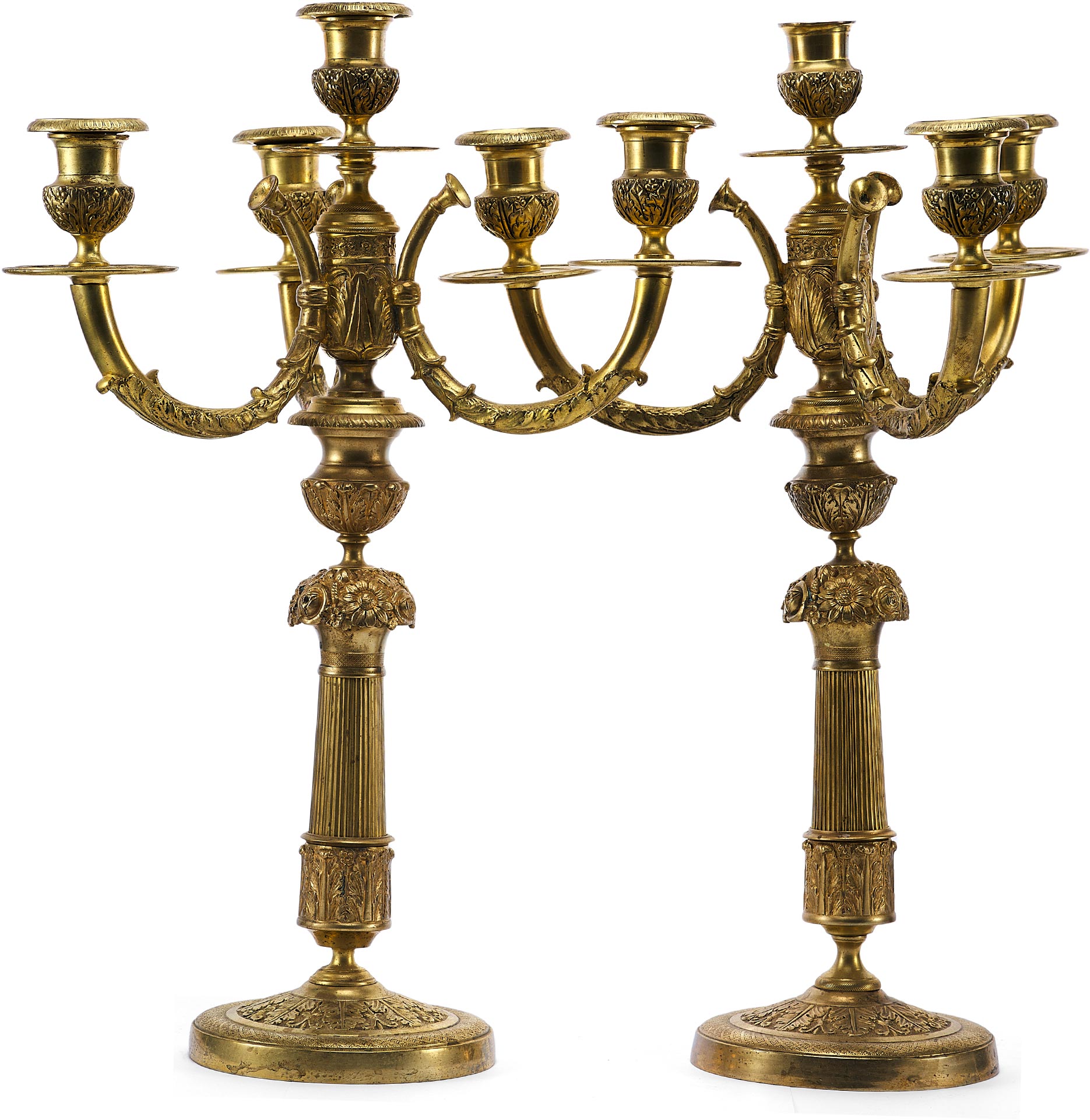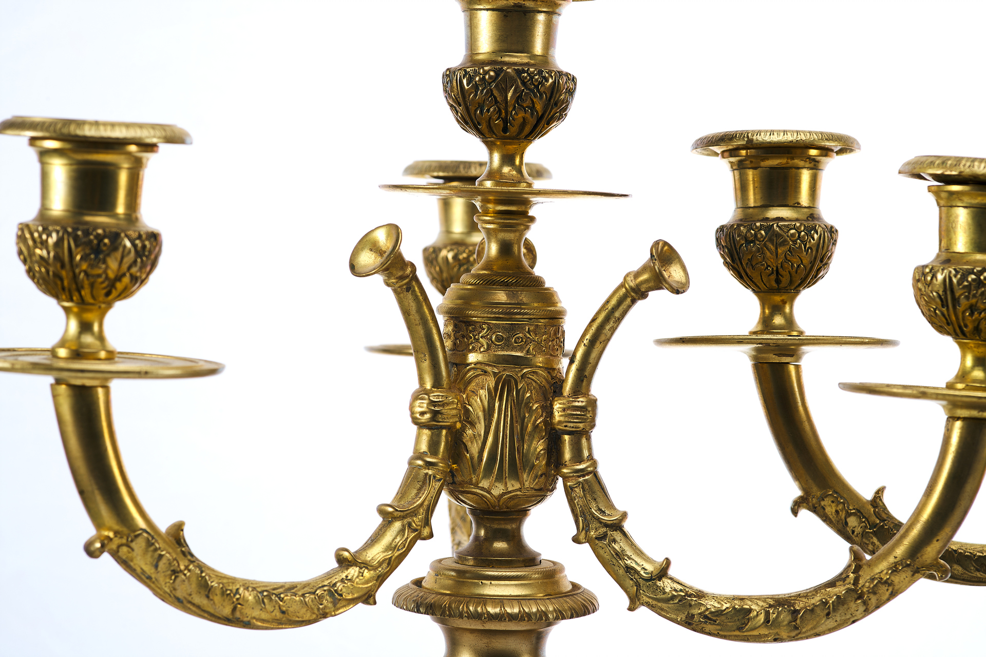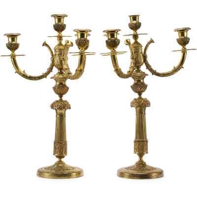 Изготовление этих канделябров относится к 1880-м годам, периоду, когда бронзовое художественное литье достигло высокого уровня мастерства. Европейские бронзовщики конца XIX века широко использовали античные и классические мотивы, создавая изделия, которые гармонично вписывались в роскошные интерьеры эпохи. Литье из бронзы требовало высокой квалификации: помимо основного процесса формовки и отливки, мастера применяли сложные техники обработки, такие как гравировка, чеканка и патинирование, чтобы придать поверхности выразительность и глубину.