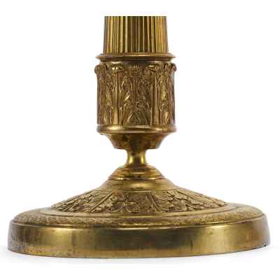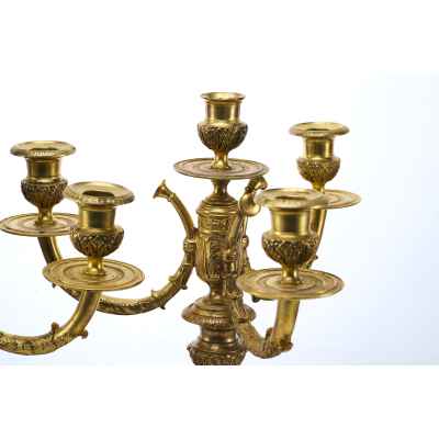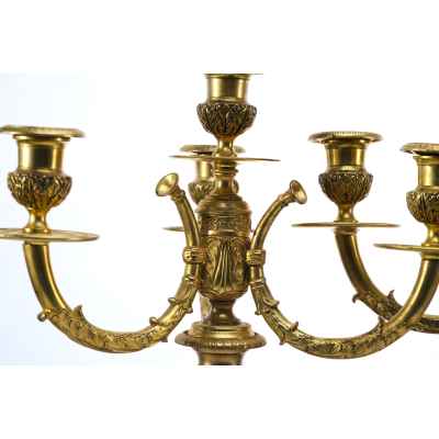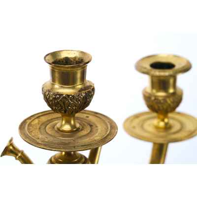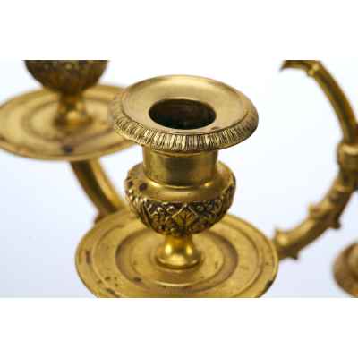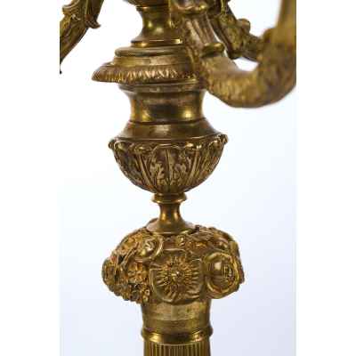 Производство бронзовых канделябров в Европе имеет долгую историю, восходящую к XVIII веку. В то время подобные предметы считались признаком статуса и изготавливались на заказ для аристократии и богатых буржуа. В XIX веке, с развитием промышленного производства, такие изделия стали более доступными, однако мастера-бронзовщики продолжали работать в духе традиционного ремесла, создавая уникальные произведения. Декоративные элементы, такие как стилизованные растительные орнаменты и классические пропорции, свидетельствуют о влиянии древнегреческих и римских образцов.