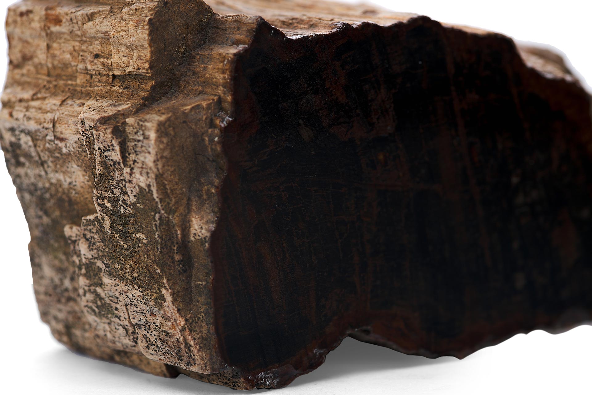 Материалы и техника формирования данного объекта — результат природного процесса, известного как петрификация (от греч. "πέτρα" — камень). Это процесс замещения органического вещества древесины минеральными соединениями, в первую очередь кремнезёма — халцедоном, кварцем, аморфным опалом. Такая трансформация происходит, когда древесина оказывается погребённой под осадками в бескислородной среде. Минералы, проникая в клетки дерева, сохраняют его анатомическую структуру: в ряде случаев видны годичные кольца, волокна и даже сосудистые пучки.