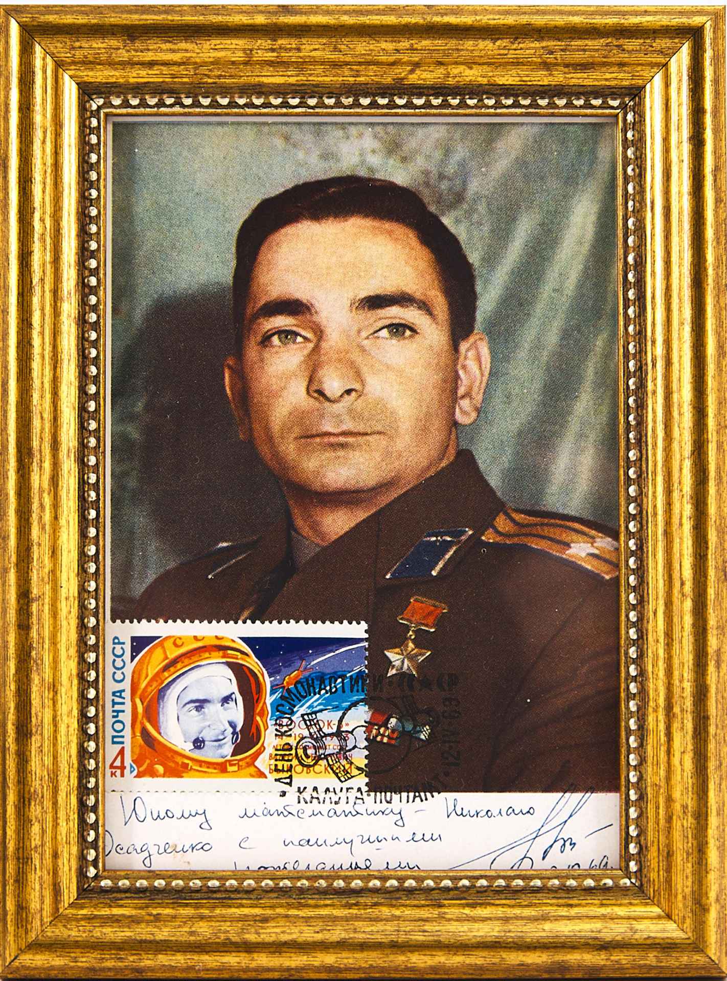 Под фотографией автограф В.Ф. Быковского: “Юному математику — Николаю Осадченко с наилучшими пожеланиями Быковский 3.10.69г”. Автограф подлинный.