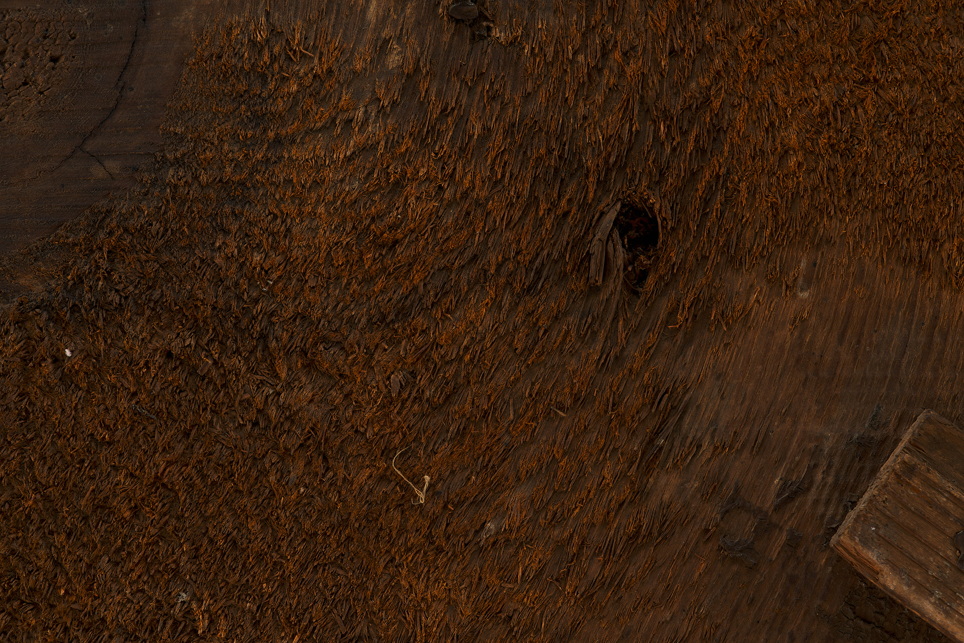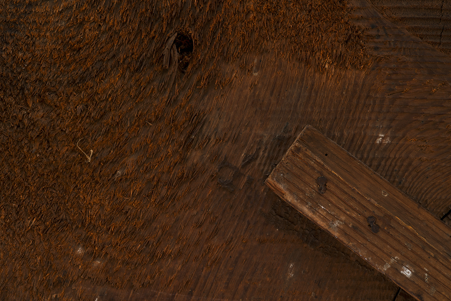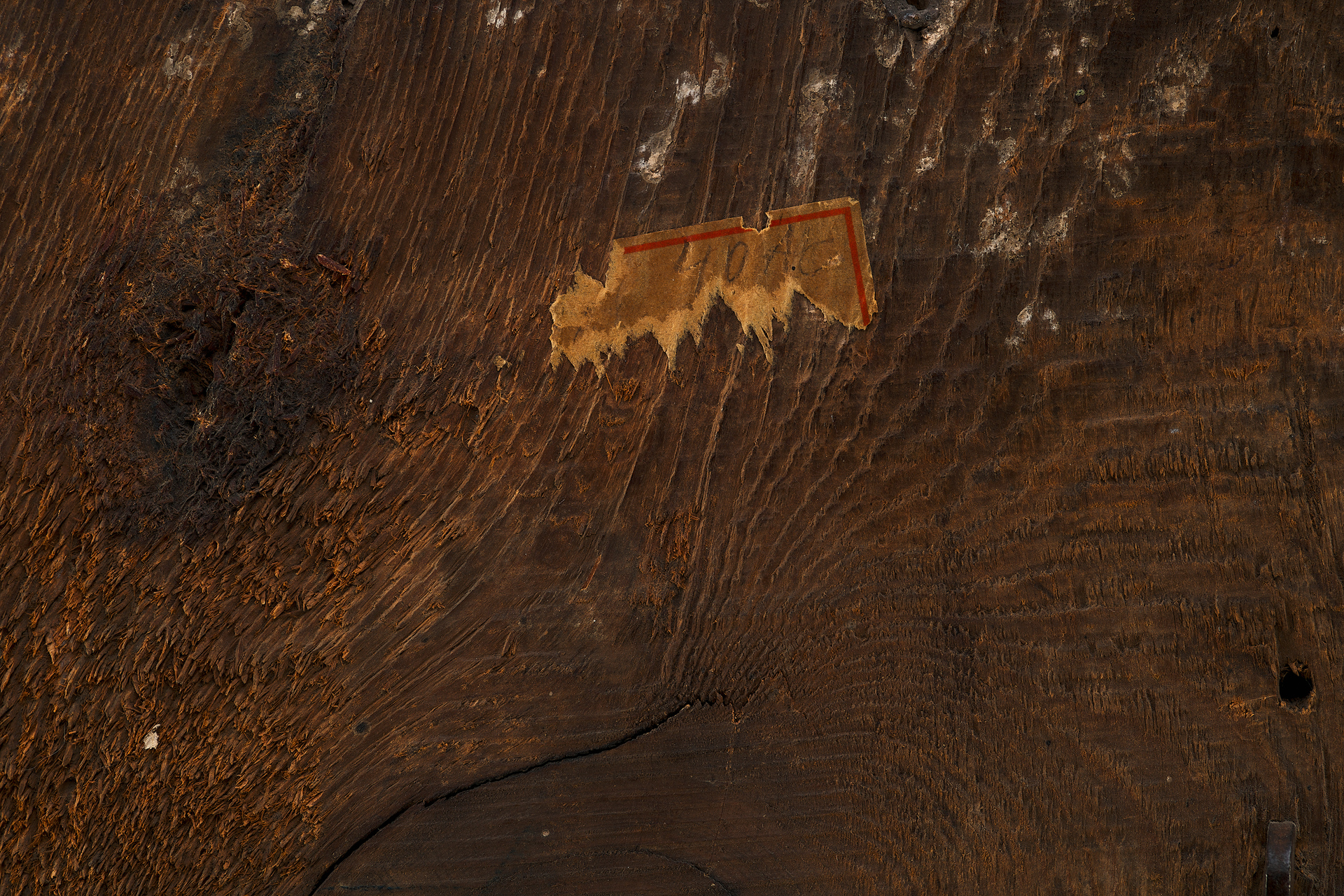 Центром рельефа служит лицевая часть Спасителя, изображённая с открытыми глазами, терновым венцом и кровоточащими следами на челе. Полотно, на котором запечатлён лик, обрамлено складками, тщательно переданными в древесной резьбе. Над убрусом помещена царская корона, что придаёт образу торжественность и подчёркивает божественное достоинство Христа. Всё произведение выполнено из дерева с применением резьбы и полихромной покраски, в том числе золочения, характерного для декоративного убранства религиозных предметов.