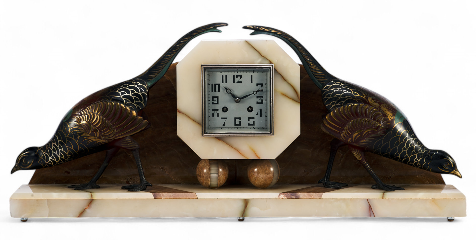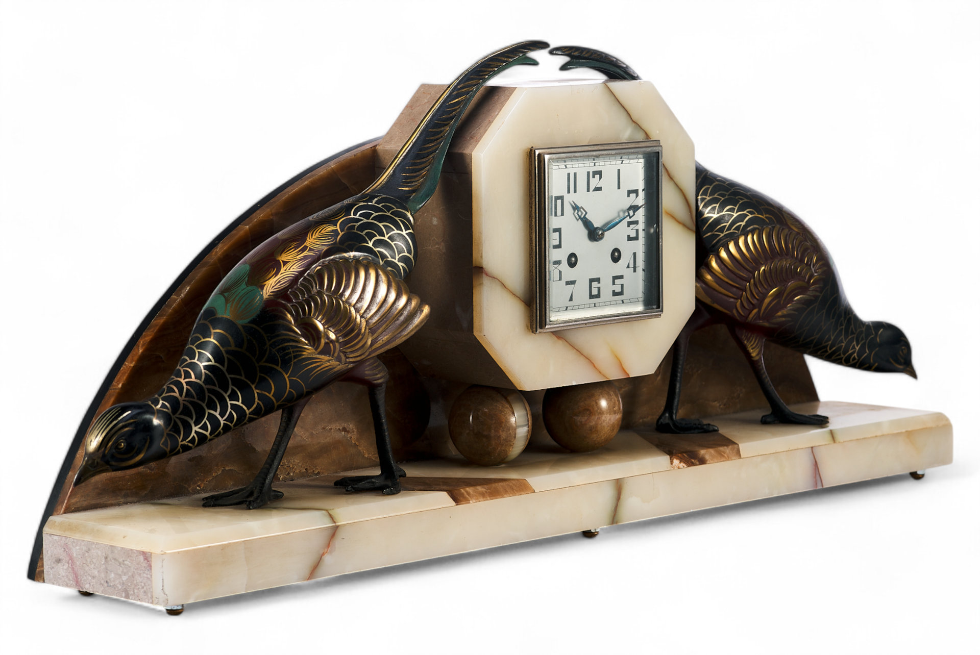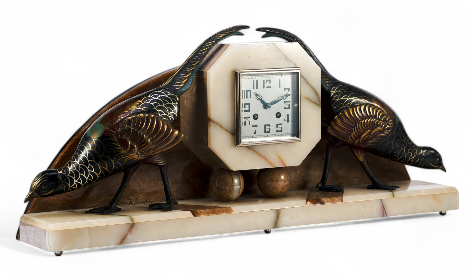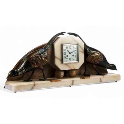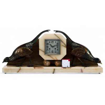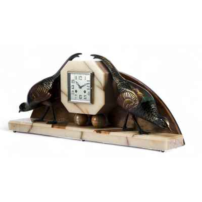 Часы в стиле art deco Два фазана шпиатр, мрамор Европа 1920-30-е гг. 30x68x12,5 см. Европа Вторая четверть XX века