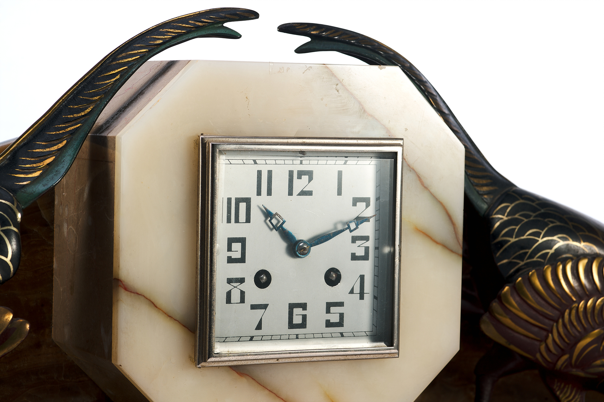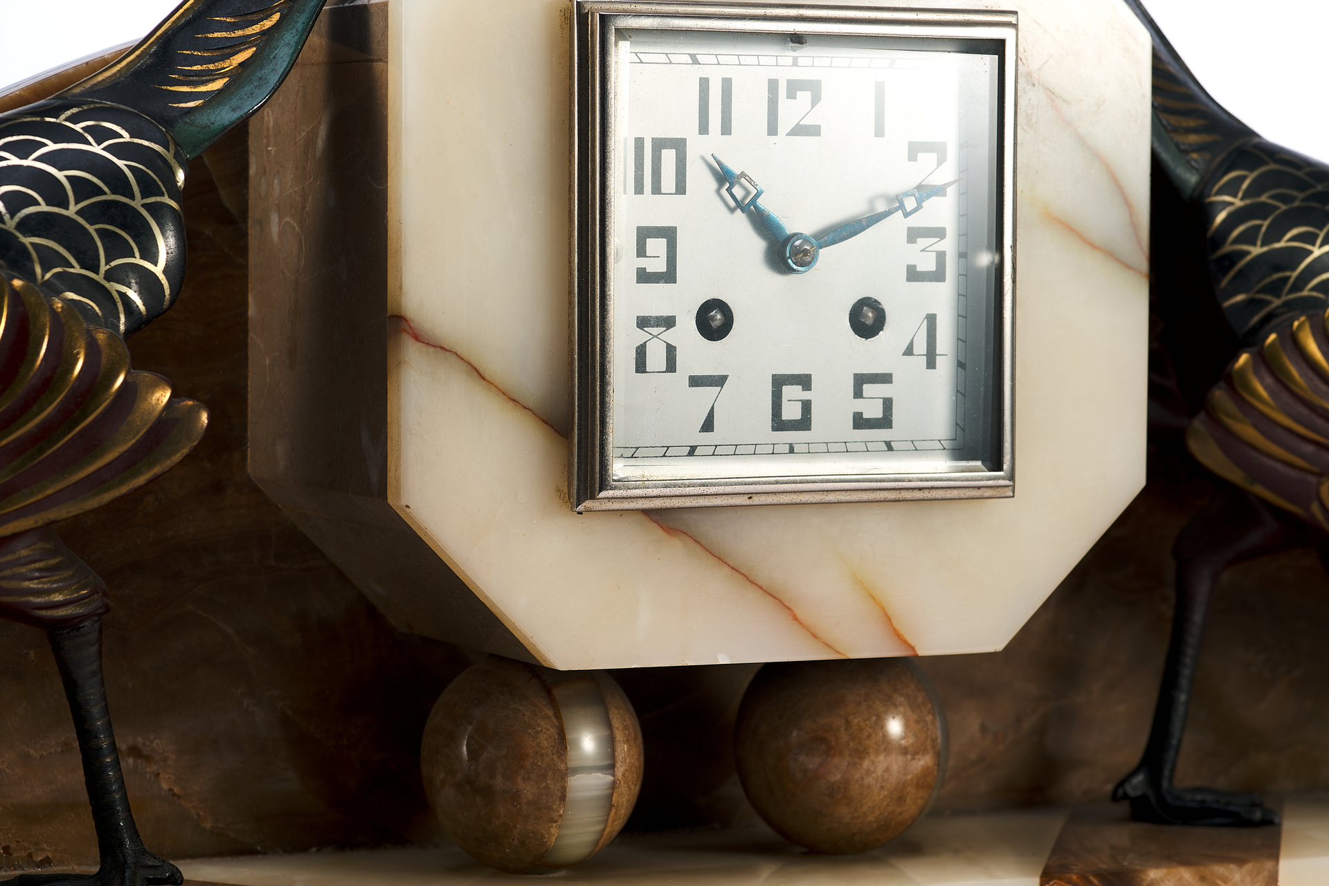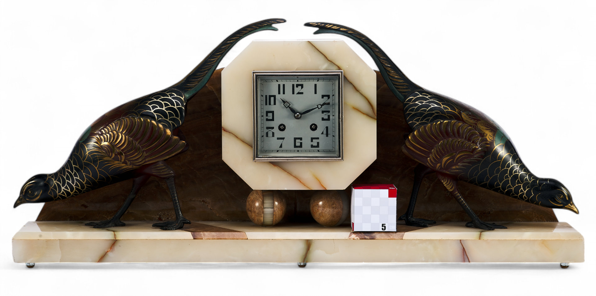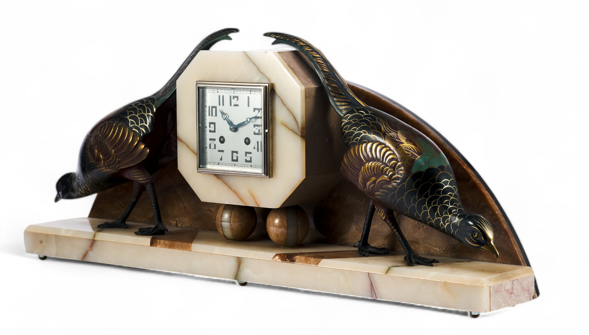 Часы в стиле art deco Два фазана шпиатр, мрамор Европа 1920-30-е гг. 30x68x12,5 см. Европа Вторая четверть XX века