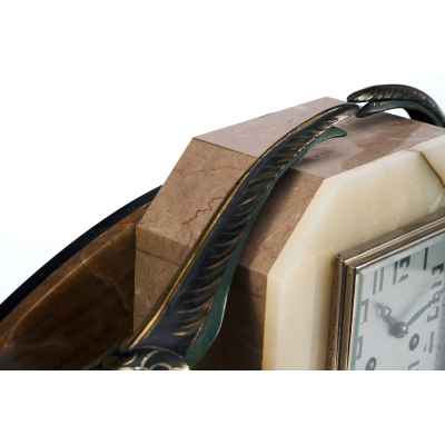 Данный тип предметов относится к кабинетной пластике, популярной в Европе начала XX века, особенно в Австрии и Франции. Подобные скульптурно-декоративные часы занимали почётное место в интерьерах и кабинетах и часто служили престижным подарком. Особенно ценились работы, выполненные в стиле ар-деко, совмещающем черты модерна, ориентальных мотивов и эстетики геометрии.
