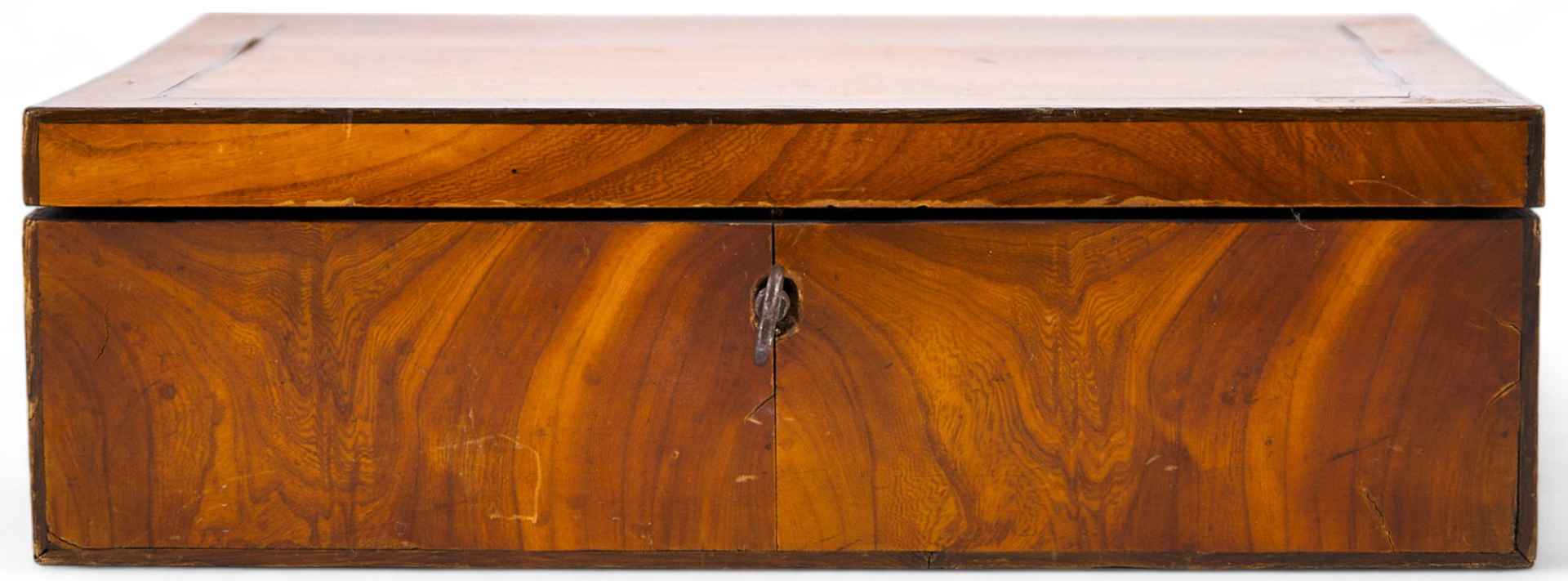 Шкатулка для документов с ключем дерево, шпон ореха Европа кон. ХIХ в. 20,3x30,8x9,7 см конец XIX — начало XX вв