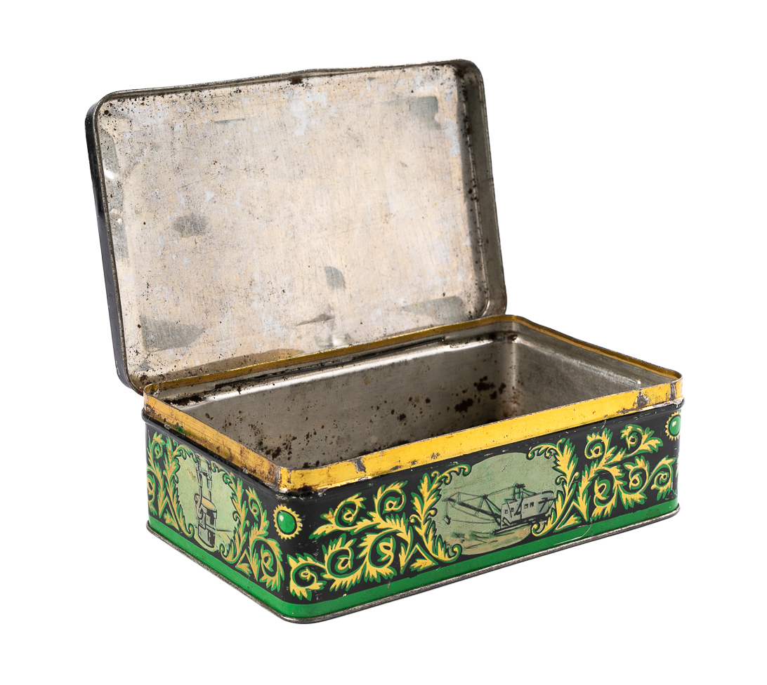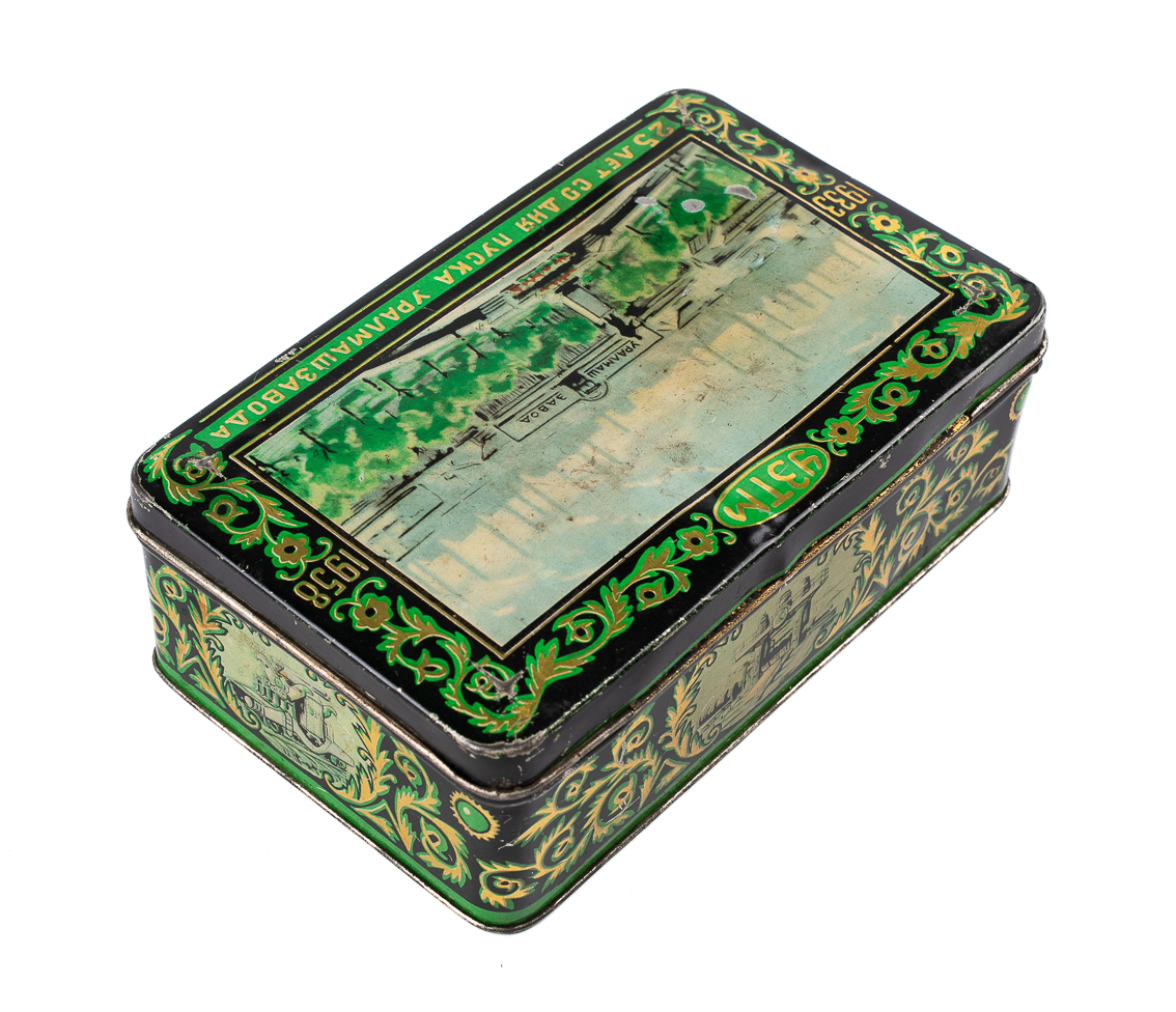 Несмотря на повсеместный переход к картонной упаковке в послевоенные годы, жесть продолжала использоваться для создания ограниченных партий упаковки по особым поводам — юбилеям, государственным праздникам, достижениям народного хозяйства. Это придавало предмету характер уникального памятного изделия и делало его привлекательным для хранения и повторного использования в быту.