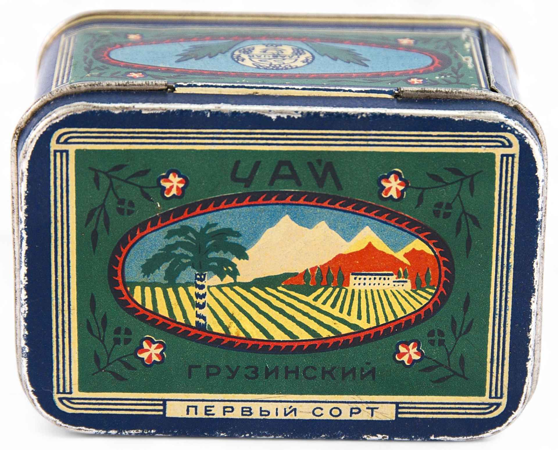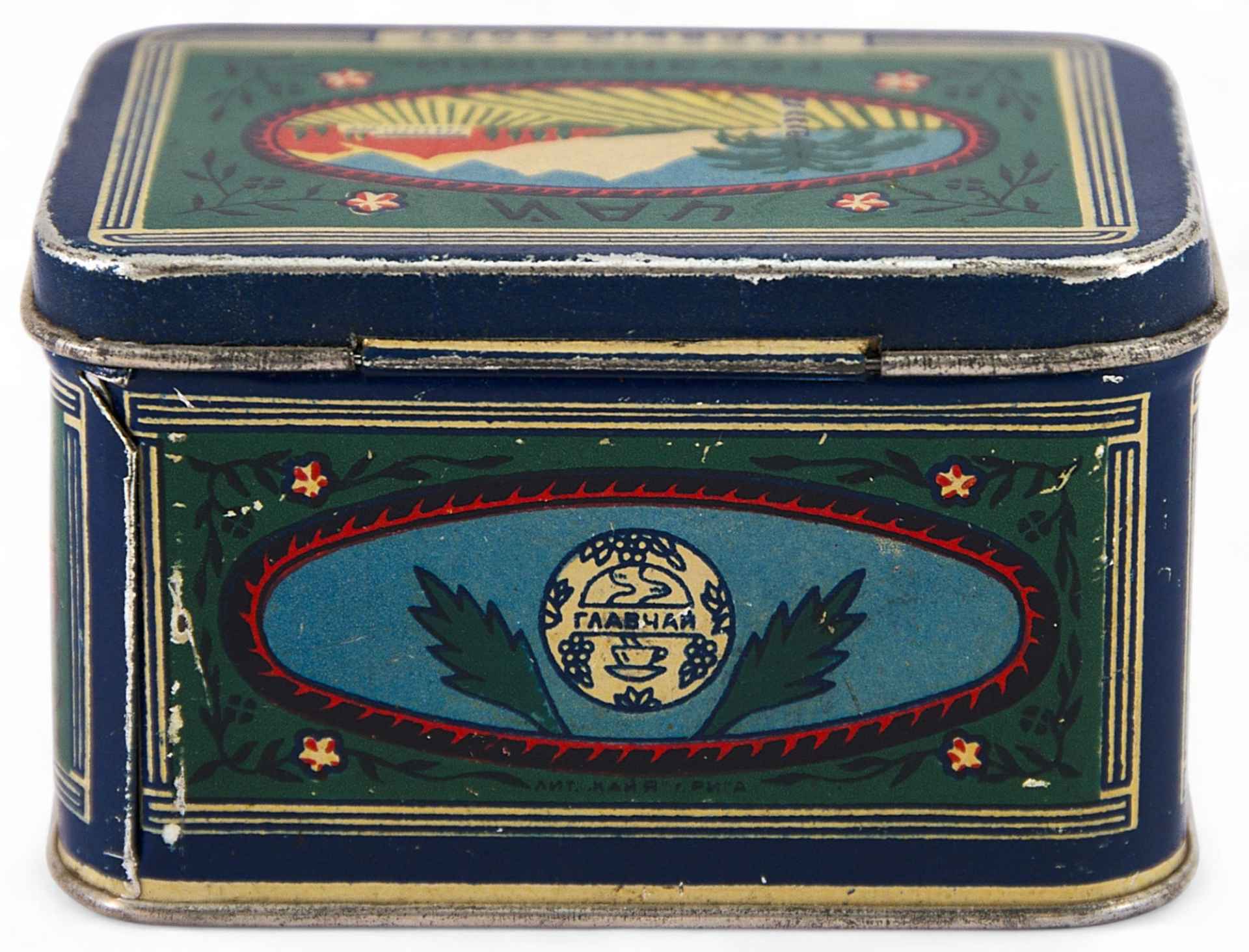 Жестяная коробочка для грузинского чая Главчай, СССР 1946