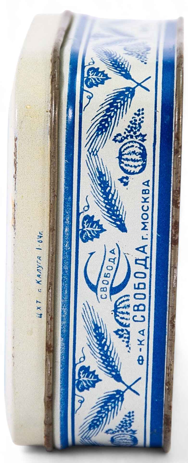 Сегодня «СВОБОДА» - это современное мощное российское косметическое производство. На предприятии работает свыше 800 человек Ассортимент выпускаемой продукции насчитывает более 300 наименований разнообразных по свойствам и назначению изделий - это туалетное мыло, средства по уходу за кожей лица итела, за волосами и кожей головы, за полостью рта, детская косметика и косметические изделия специального назначения. Жестяная упаковка всех видов и форм едва ли не с самого момента своего появления превратилась в востребованную и доступную площадку для массовой рекламы - в том числе и социально-политической. Яркая обертка с броским названием гораздо сильнее привлекает покупателя нежели простая бумага. Рекламно-агитационная мощь упаковки была просто невероятной. Причем каждая маленькая агитка попадала точно в цель — в руки покупателя. Но в СССР объемы выпуска такой упаковки были в разы меньше, чем в царский период—после революции этот упаковочный формат чаще заменяла более простая и дешевая в производстве картонная коробка. В коллекциях такие экспонаты встречаются довольно редко. Еще реже встречаются пропагандистские обертки, выпуск которых был приурочен к каким-то конкретным индустриальным достижениям Советского Союза.