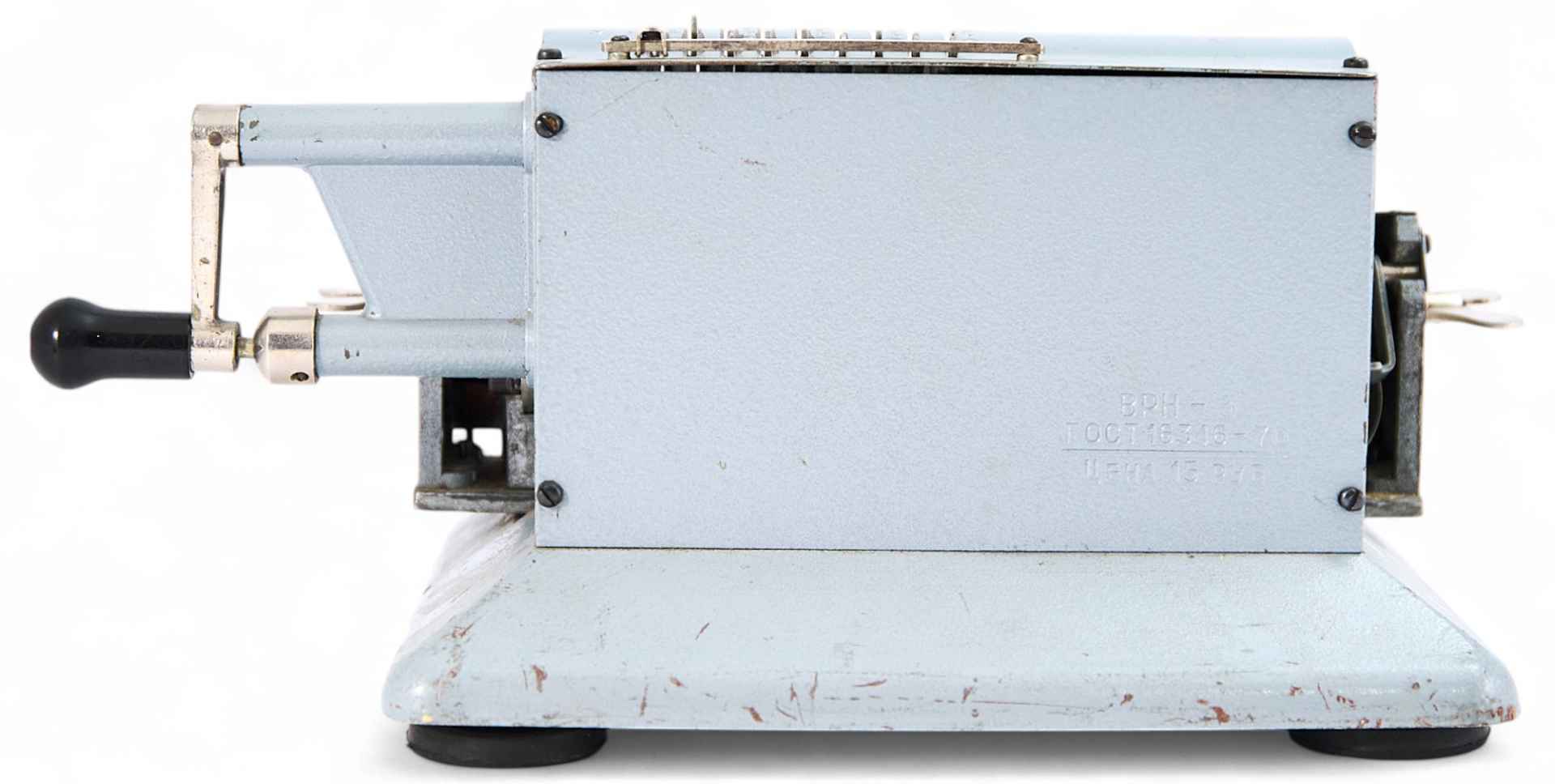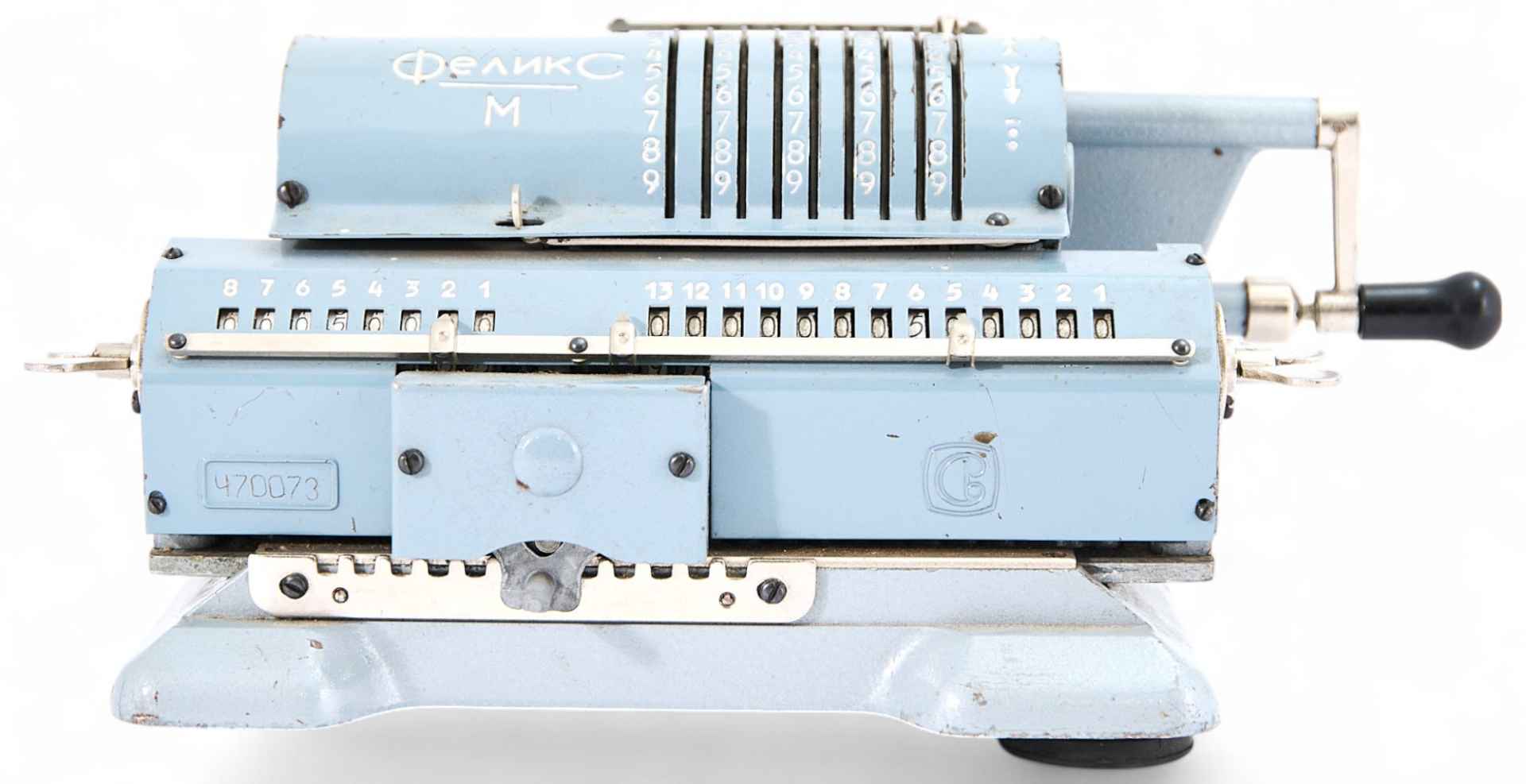 Механический арифмометр «Феликс М». Слева внизу имеется № «470073». Сзади надпись: «ВРН-3 ГОСТ 16346-70 Цена 15 руб» Модель выпускалась в 1978 году на заводе счетных машин "Счетмаш" (г. Курск) «Феликс» — самый распространённый в СССР арифмометр. Выпускался, с учётом многочисленных модификаций, с 1929 по 1978 год на заводах счётных машин в Курске (Счётпмащ), в Пензе (Пензенский завод вычислительной техники) и в Москве (Завод счётно-аналитических машин имени В. Д. Калмыкова (САМ)).