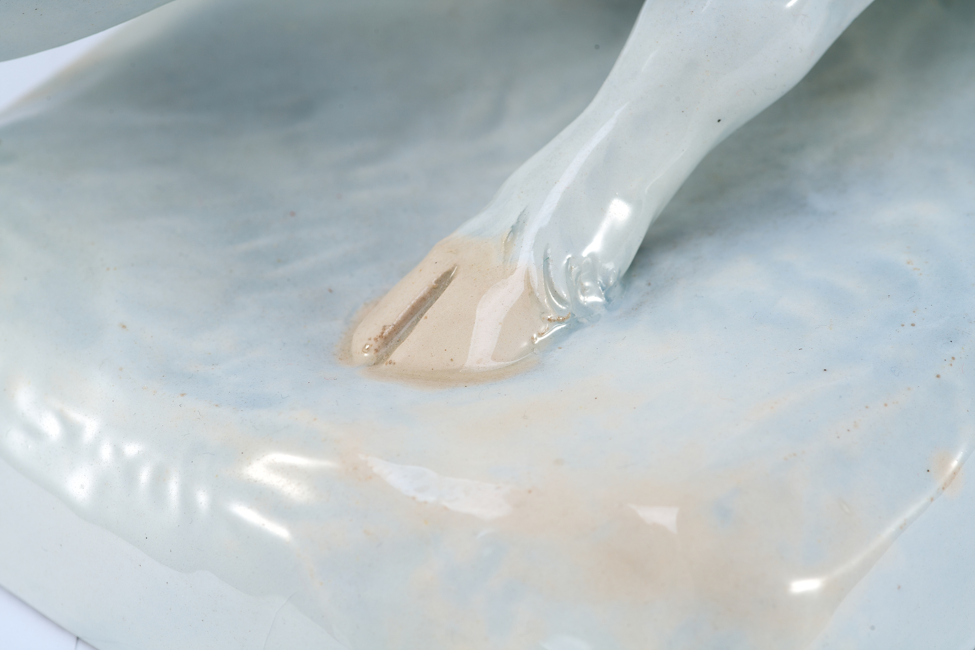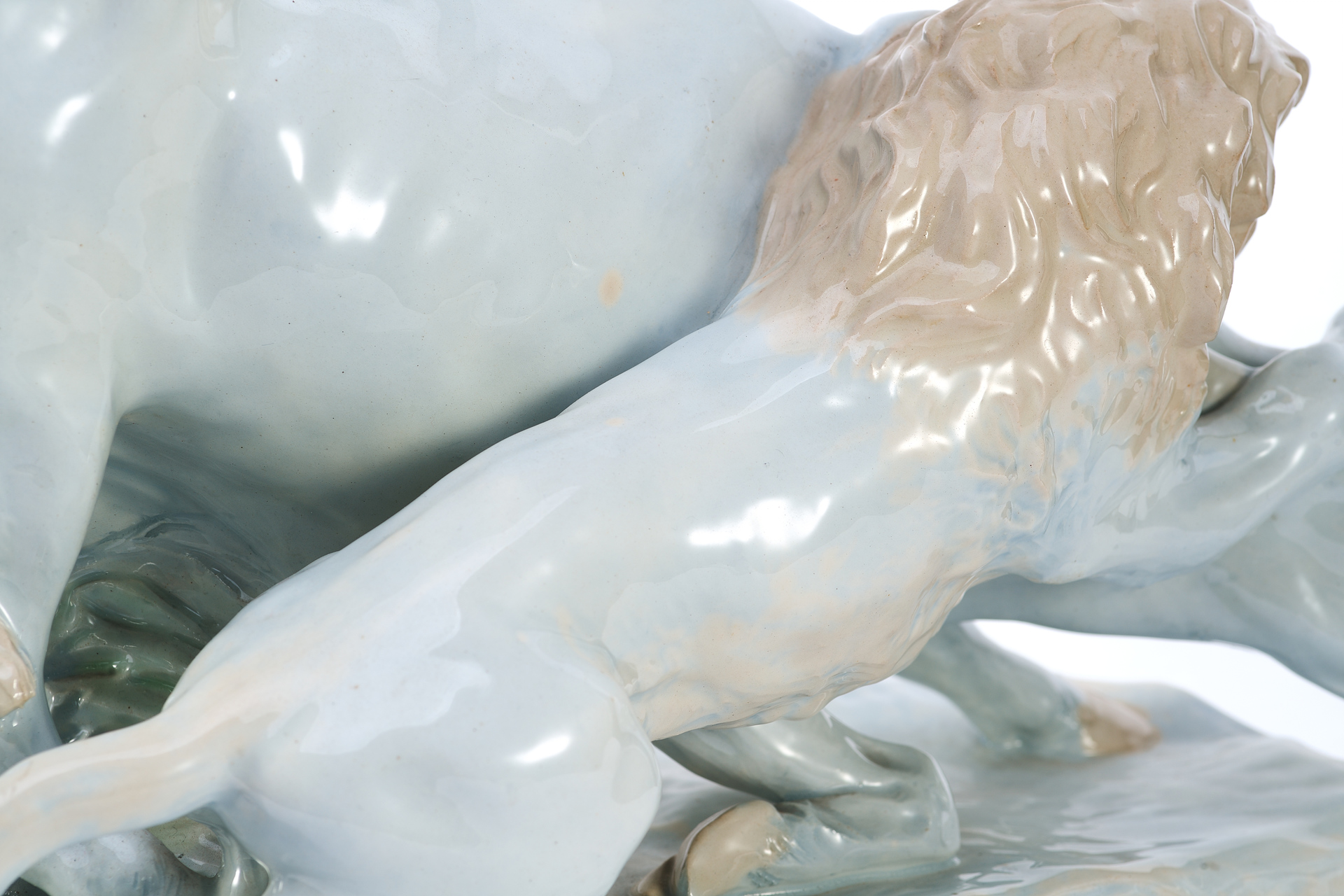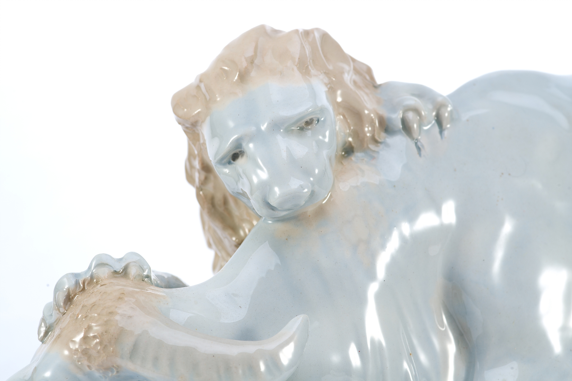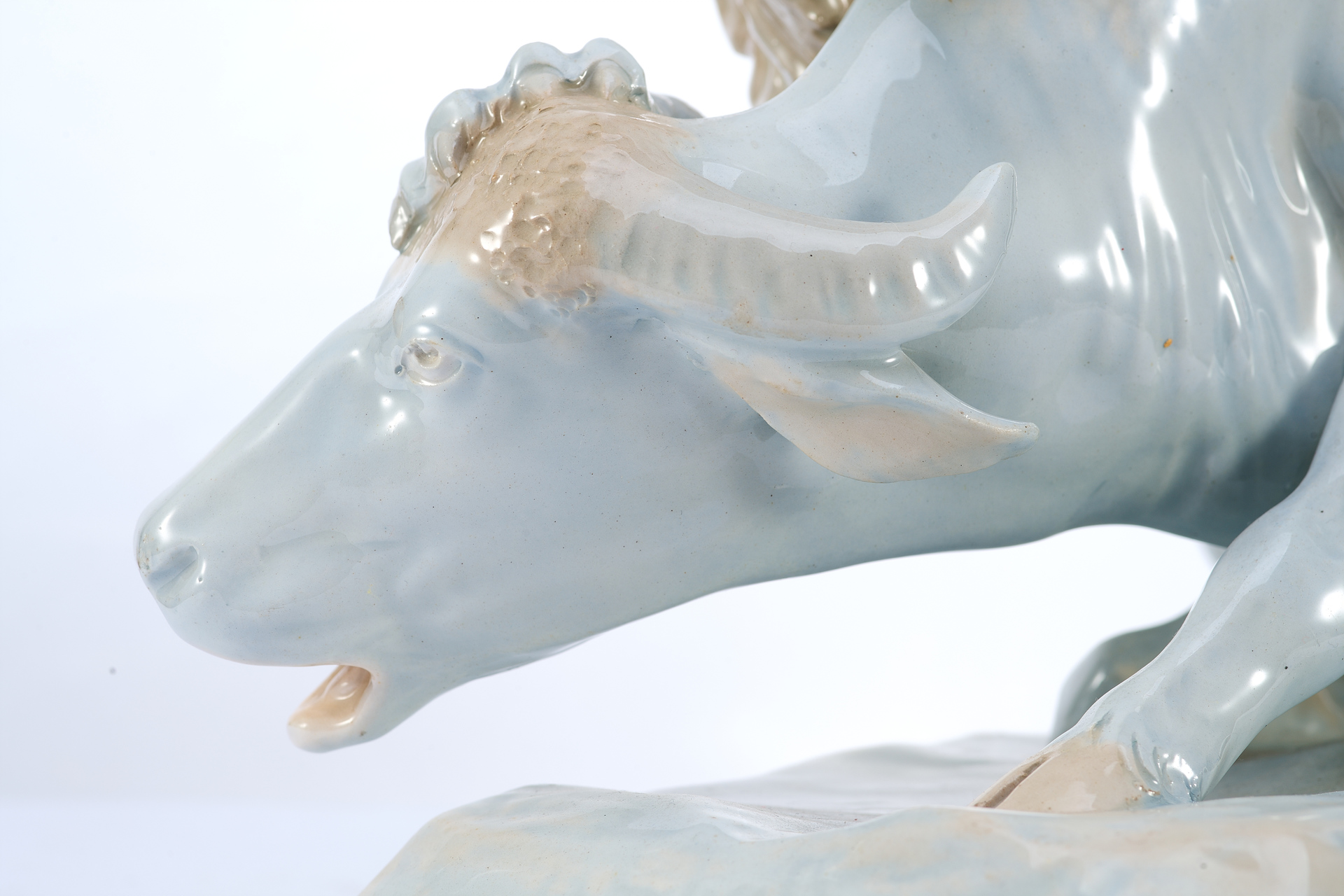 Скульптура Схватка льва с буйволом фаянс Erich Oehme 45х27 см. Европа середина ХХ века