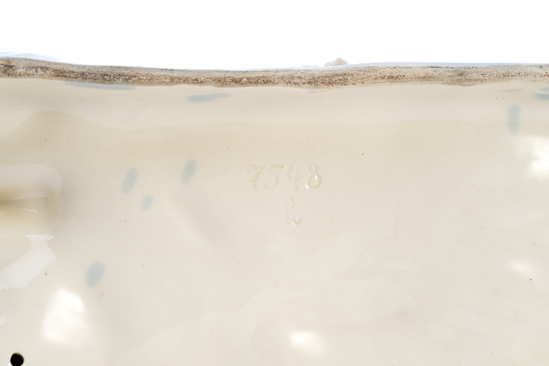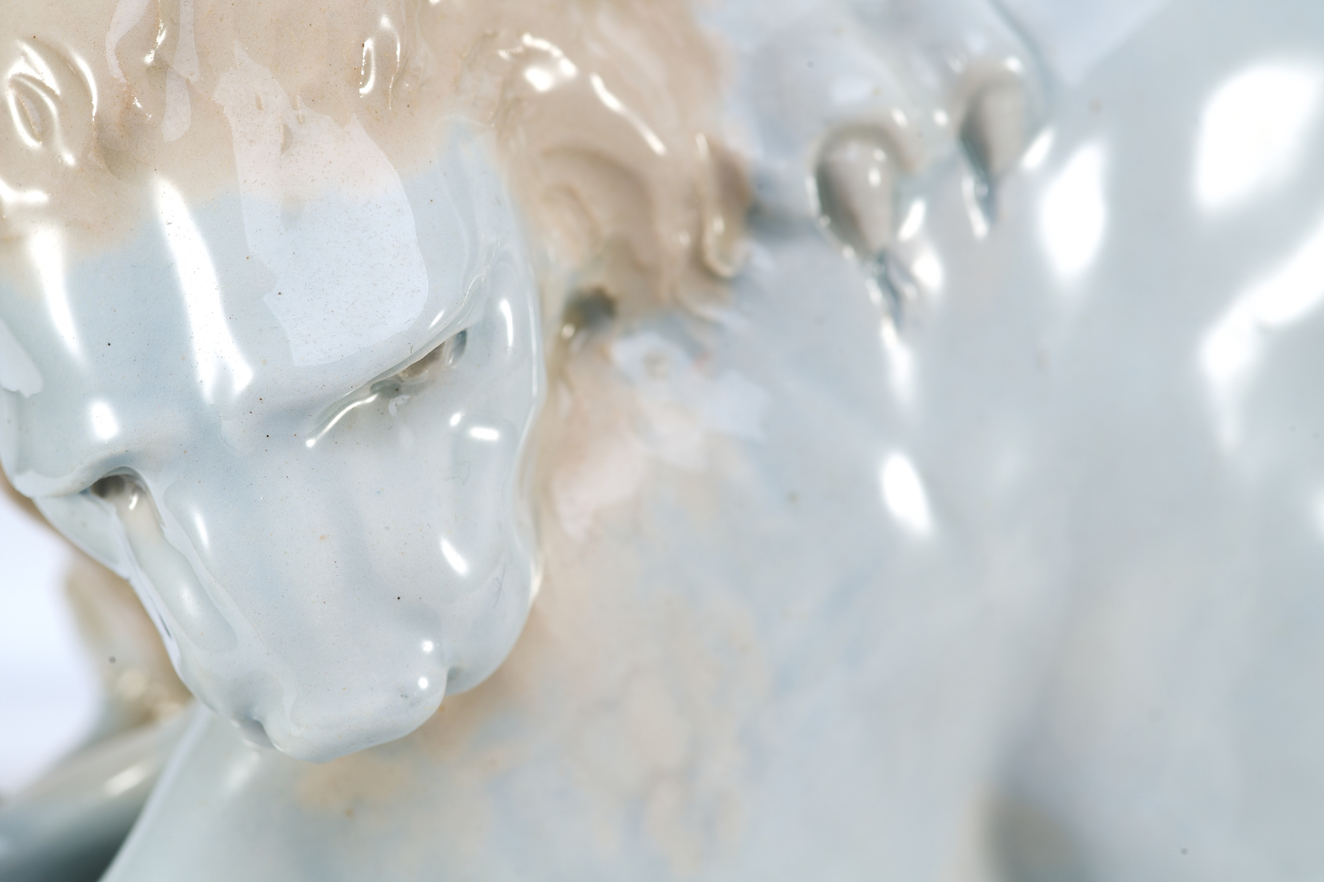 Художественная выразительность скульптуры связана с традицией анималистической пластики, особенно популярной в Германии в первой половине XX века. Эріх Эме, известный скульптор-анималист, с 1912 года работал в Мейсенской фарфоровой мануфактуре. Его творчество отличалось динамикой, анатомической достоверностью и пластической точностью образов. Даже в отсутствие авторского клейма, композиция с номером «7548 2» соответствует известным работам мастера и может быть отлита по его модели. Особенность этой скульптуры — сочетание реализма и художественного драматизма, присущего работам Эме, где каждое движение фигуры наполнено внутренним напряжением. Лев в немецкой культуре традиционно ассоциировался с властью, мужеством и победой, что подчёркивает идеологическую нагрузку подобных изображений, особенно в контексте декоративного искусства при дворе Саксонии и в политических заказах Третьего рейха.