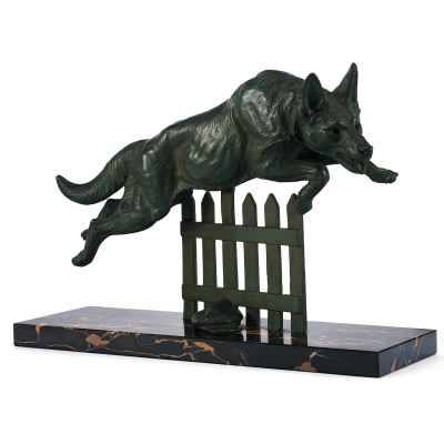 Скульптура «Овчарка перепрыгивающая через забор» Европа 1920-1930 гг
