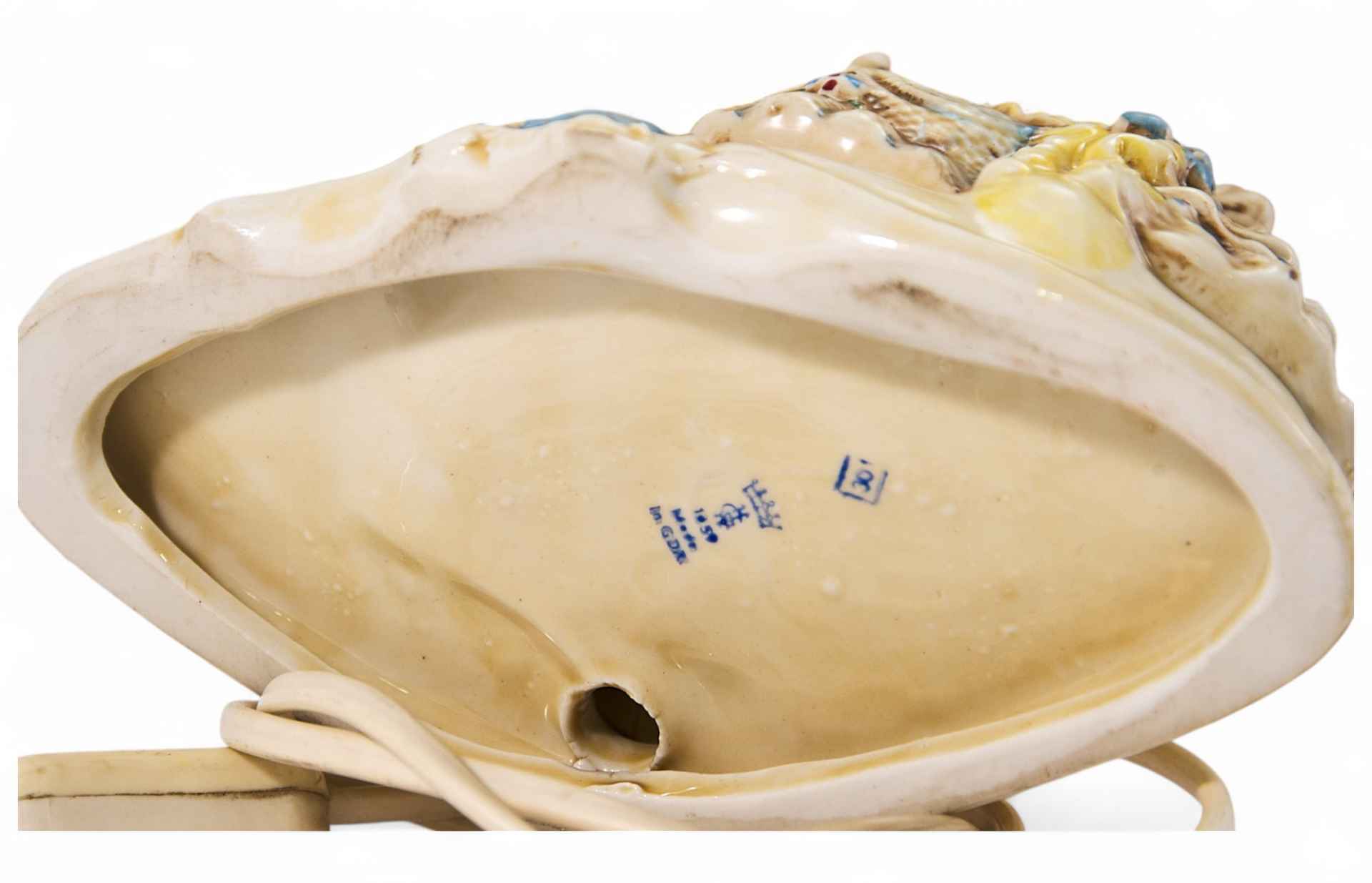 На основании фигуры стоит клеймо: 5388 Germany. Изделия с подобными клеймами изготавливались в Германии, в первой половине XX в. Множество изделий на тему галантных сцен эпохи XVIII в. было создано на керамических фабриках Тюрингии, где дольше, чем в других регионах сохранялась популярность темы «Галантного века».