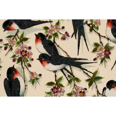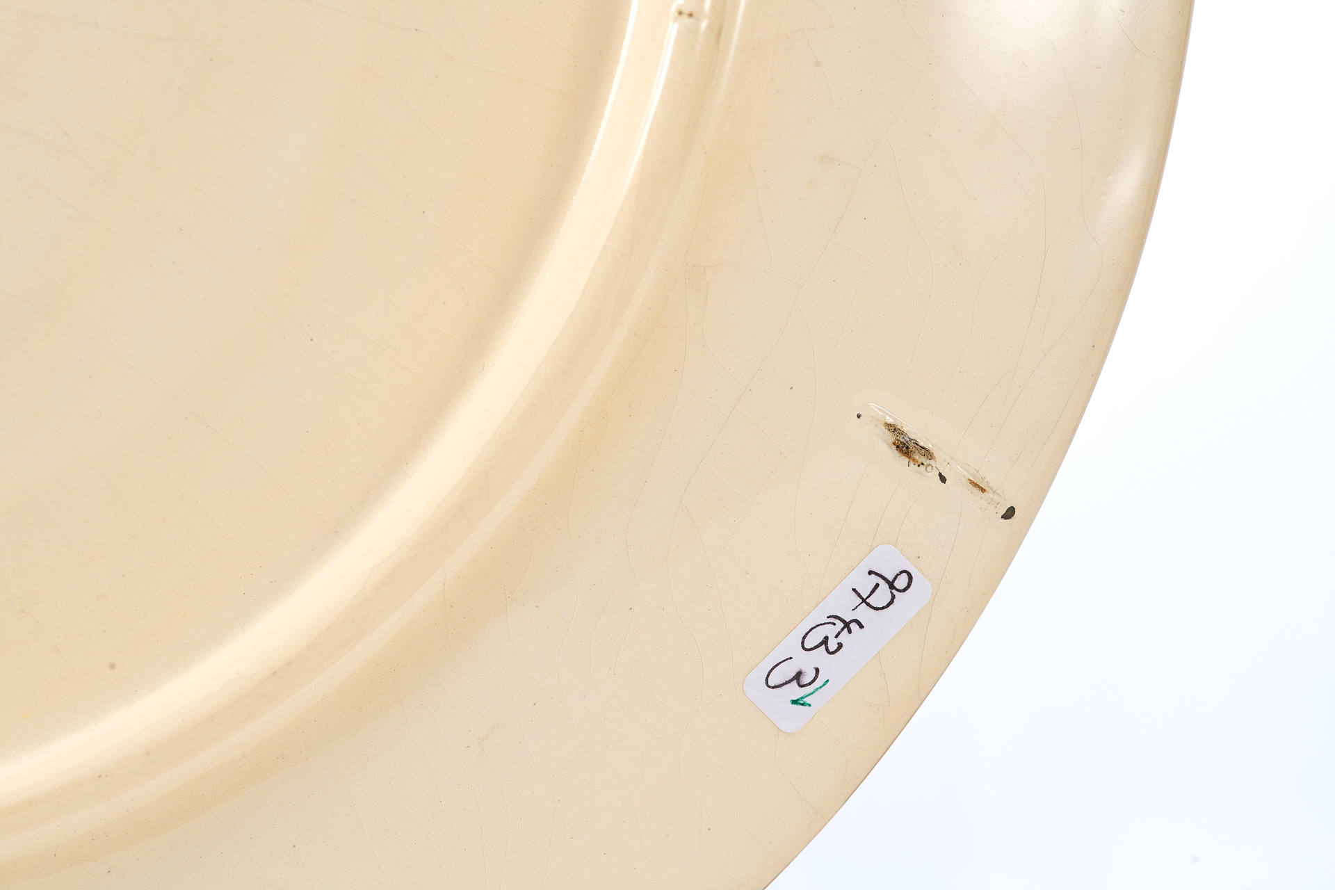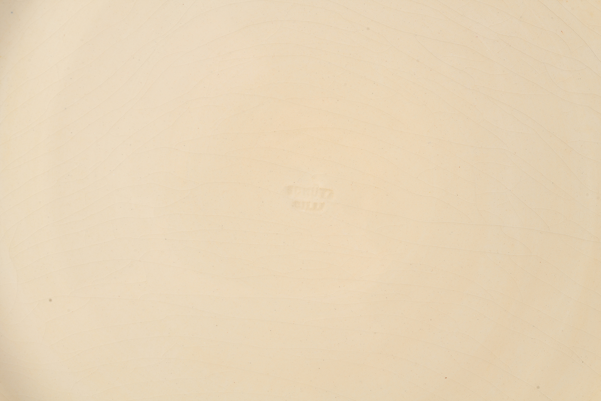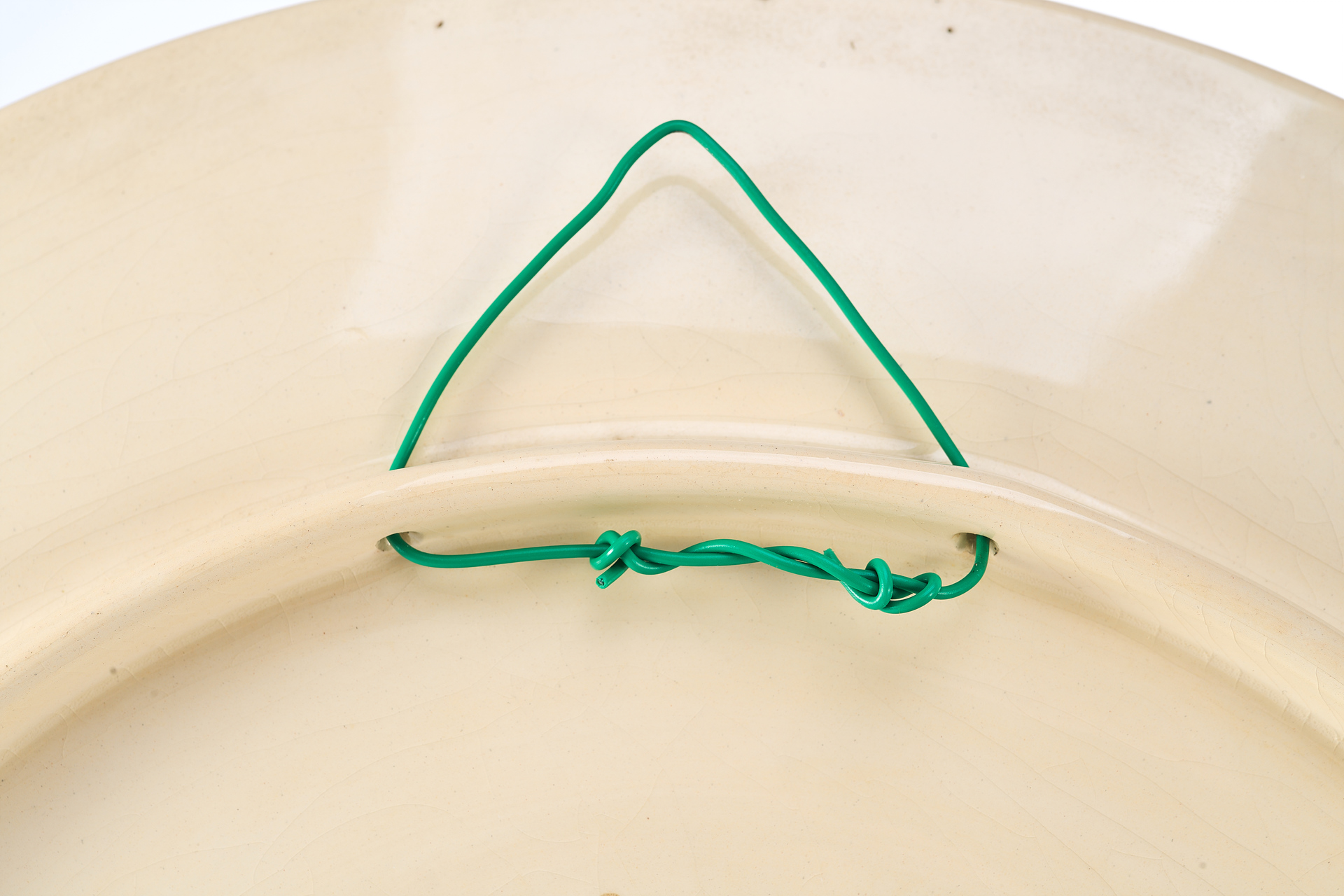 Перед нами антикварная фаянсовая декоративная тарелка, украшенная живописным изображением девяти ласточек на фоне цветущих ветвей. Композиция выстроена с особым вниманием к симметрии и ритму: птицы расположены по окружности, что придаёт изображению динамику и декоративную завершённость. Такая тарелка предназначалась преимущественно для украшения интерьера и, вероятно, являлась частью парадного убранства жилого помещения или общественного зала.