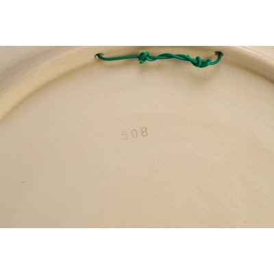Изделие создано на фаянсовой фабрике братьев Шуц (Gebrüder Schütz), основанной в Либоже, Моравия, во второй половине XIX века. Братья Арнольд и Людвиг Рихард Шуц начали производство декоративной керамики в 1854 году, первоначально ориентируясь на венский рынок. К началу XX века фабрика уже приобрела репутацию производителя изящной керамики, востребованной в Австро-Венгрии и за её пределами. Именно к этому периоду — началу XX века — и относится представленная тарелка, что подтверждается заводским клеймом с номером «508».