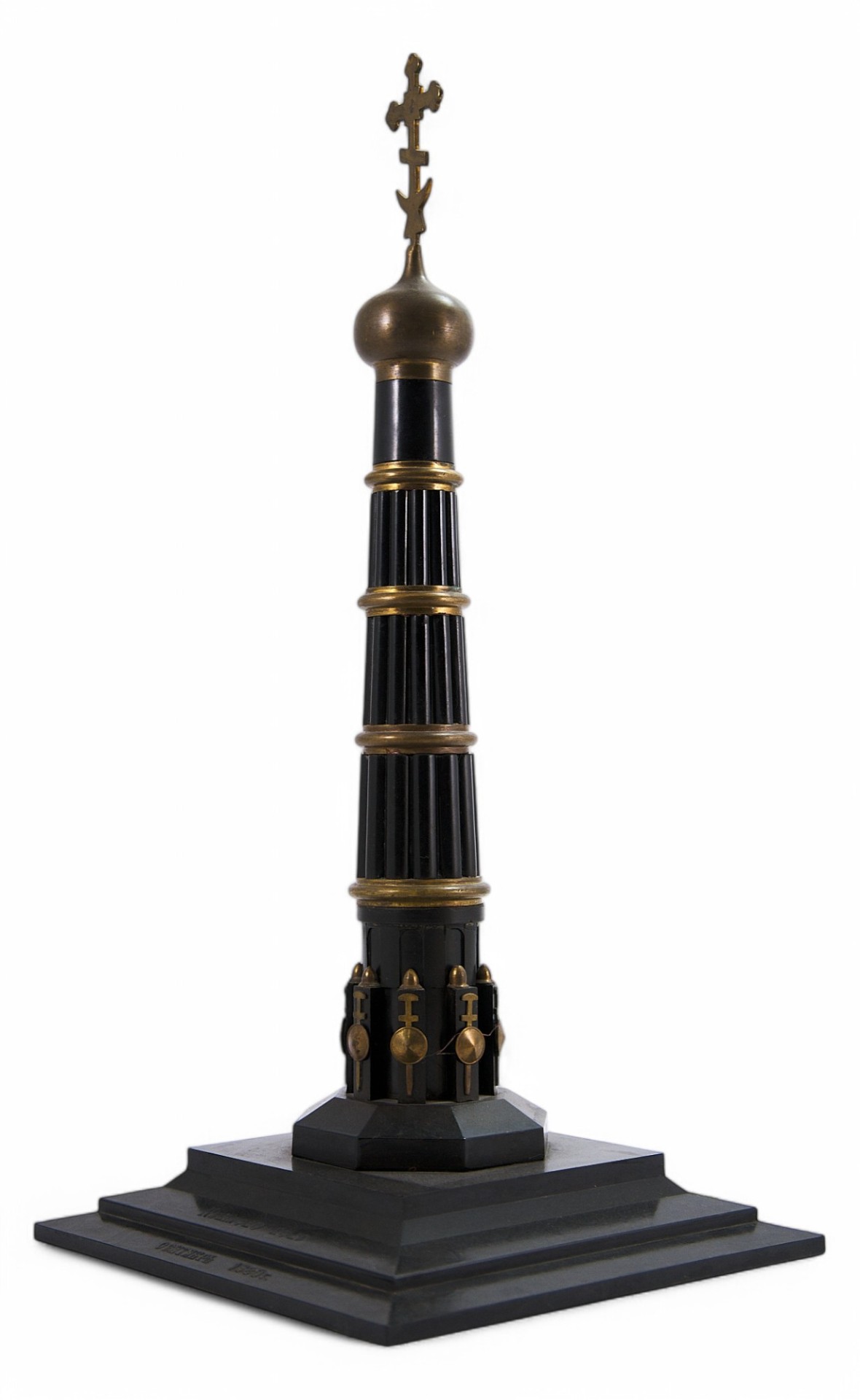 Настольная миниатюра - повторение памятной колонны установленной на Куликовом поле в честь победы русского воинства над войсками Золотой Орды 8 сентября 1380 г. На пластиковом основании 2 надписи: «... Славься поле побед Куликово — Слава ранняя русской земли!»; «Куликово поле сентябрь 1380» В 1848 - 1850 гг. на Красном холме, где была ставка Мамая,