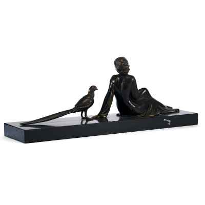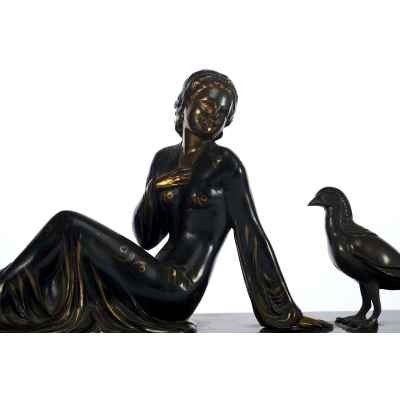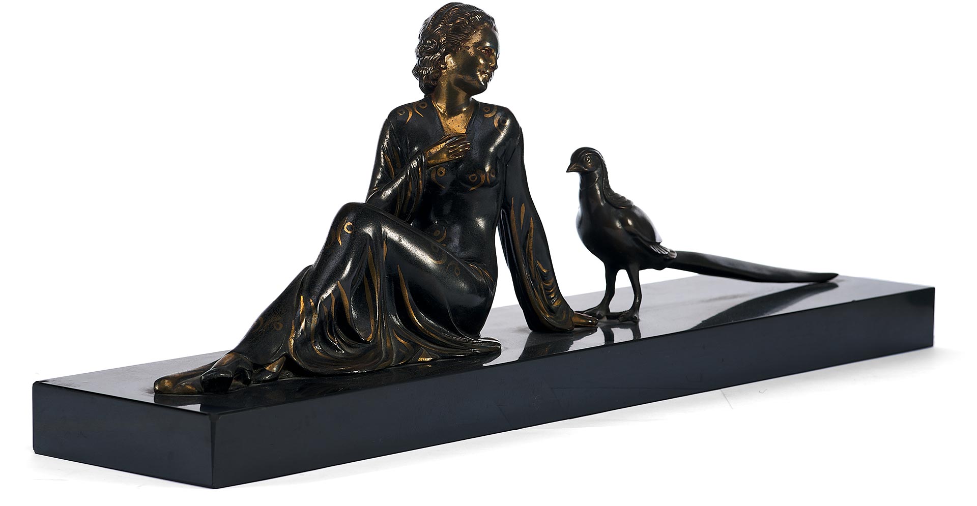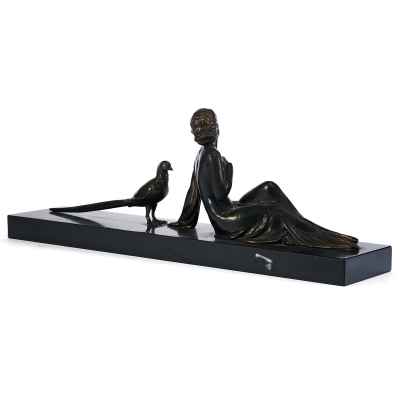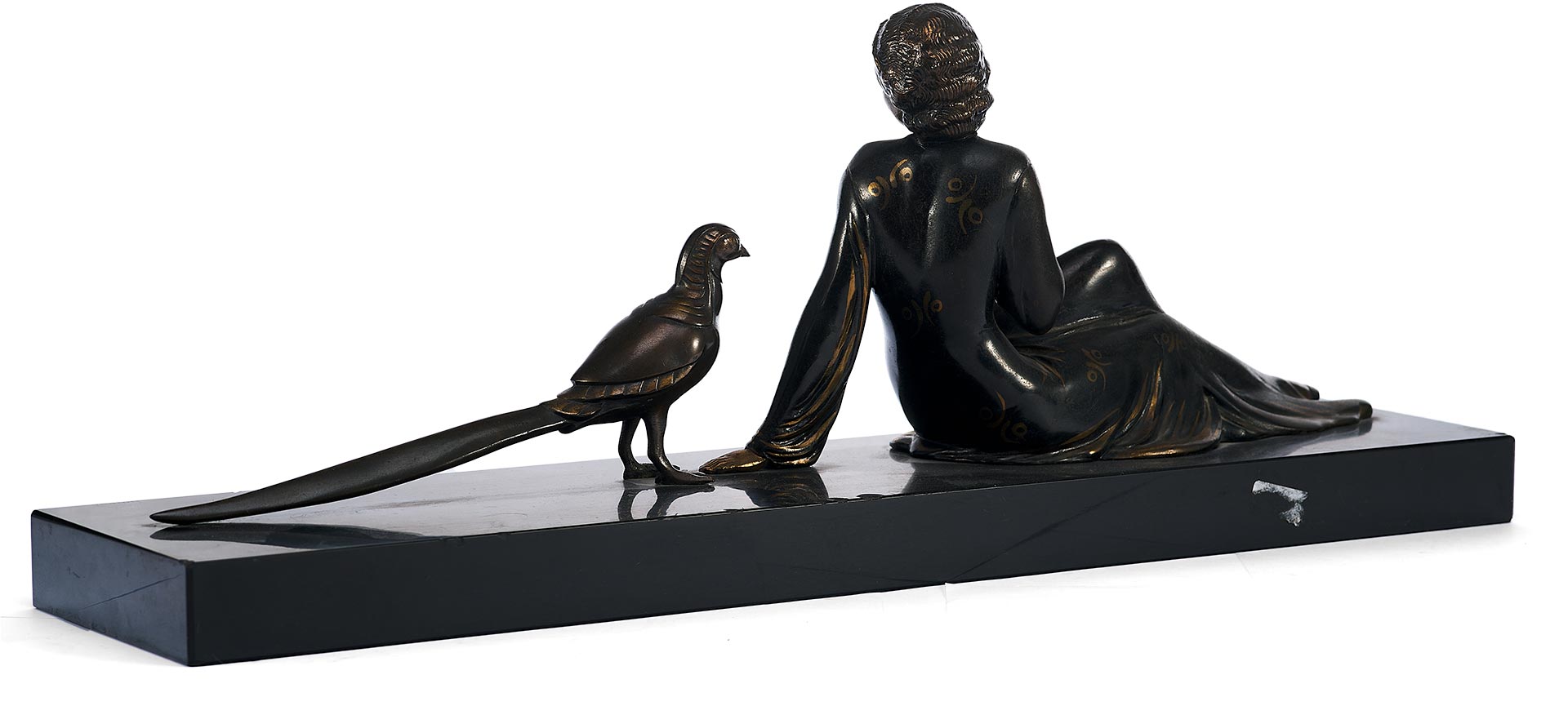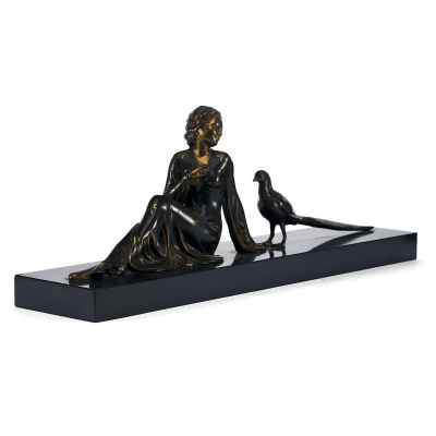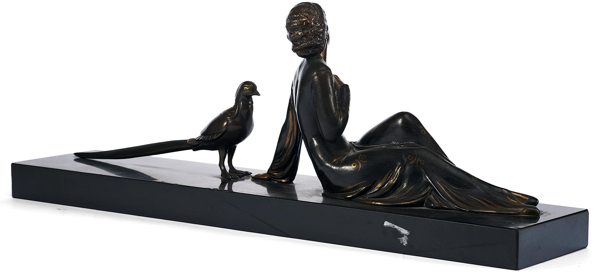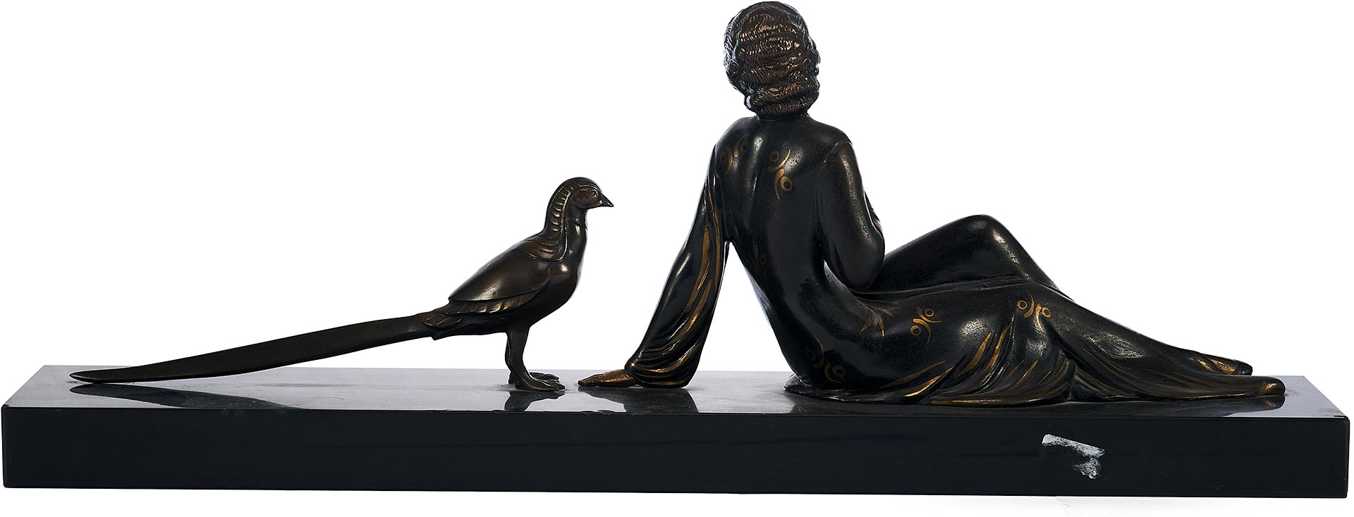 Скульптура Павлин и дама ар деко Венская бронза камень Астрия 1920-30-е гг. Австрия Вторая четверть XX века