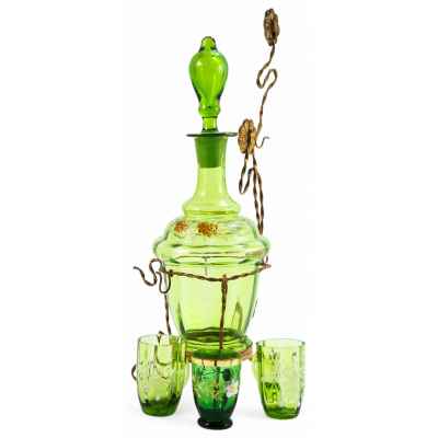 Набор для алкогольных напитков зелёного цвета. Европа Начало XX века