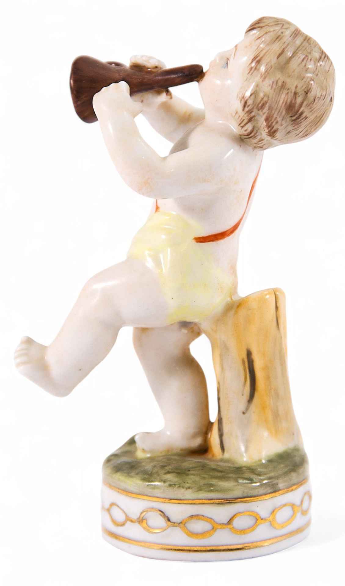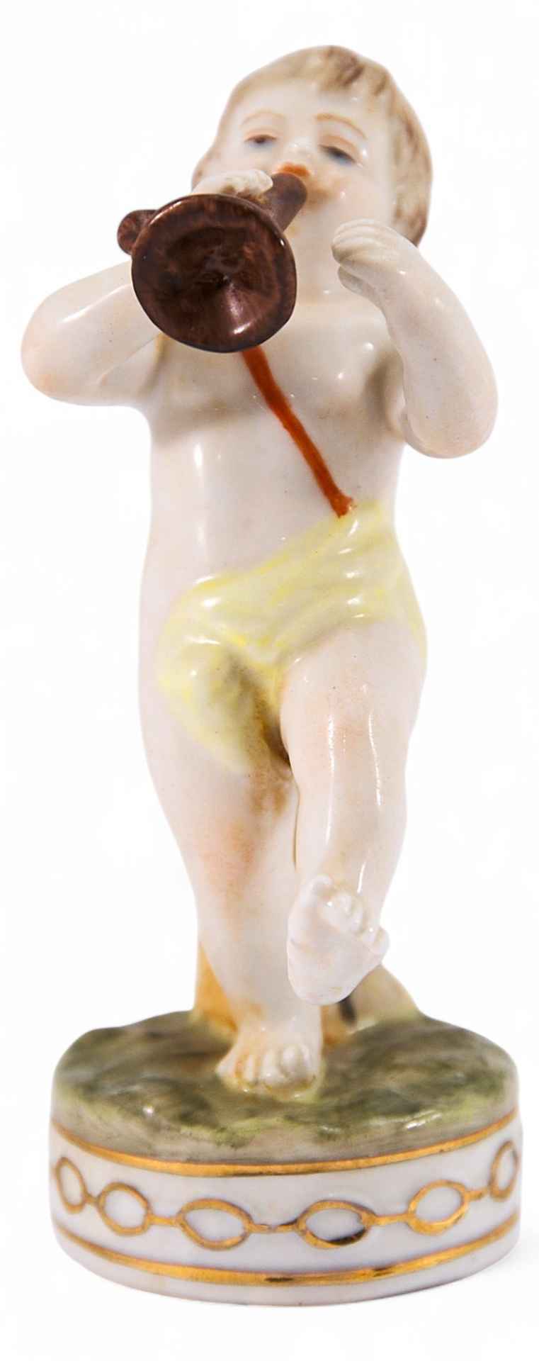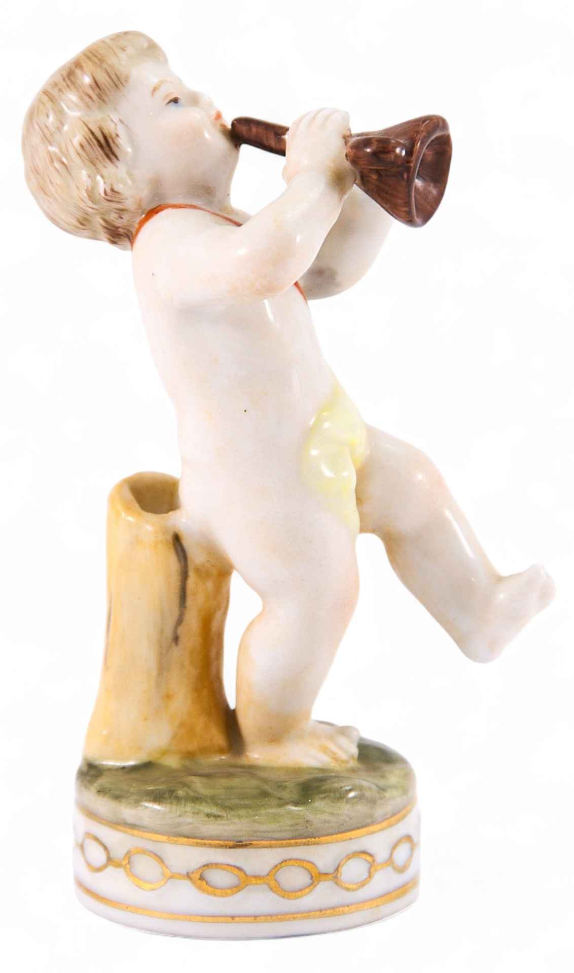 Скульптура представляющая мальчика с трубой. Данная фигура относится к серии скульптур под общим названием «Детский оркестр». Судя по клейму скульптуру можно отнести к имитации изделий фабрики «Фридрих Кристиан Грайнер и сыновья» периода 1860-1900 гг., которая располагалась в Рауэнштайне. Рауэнштайн, Тюрингия (Германия) В 1783 году владелец стекольного производства Иоганн Георг Грайнер, вместе с сыном Кристианом Даниелем Зигмундом и двоюродным братом