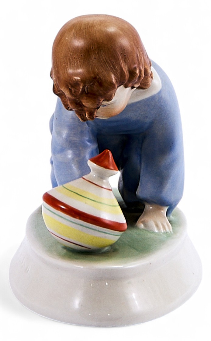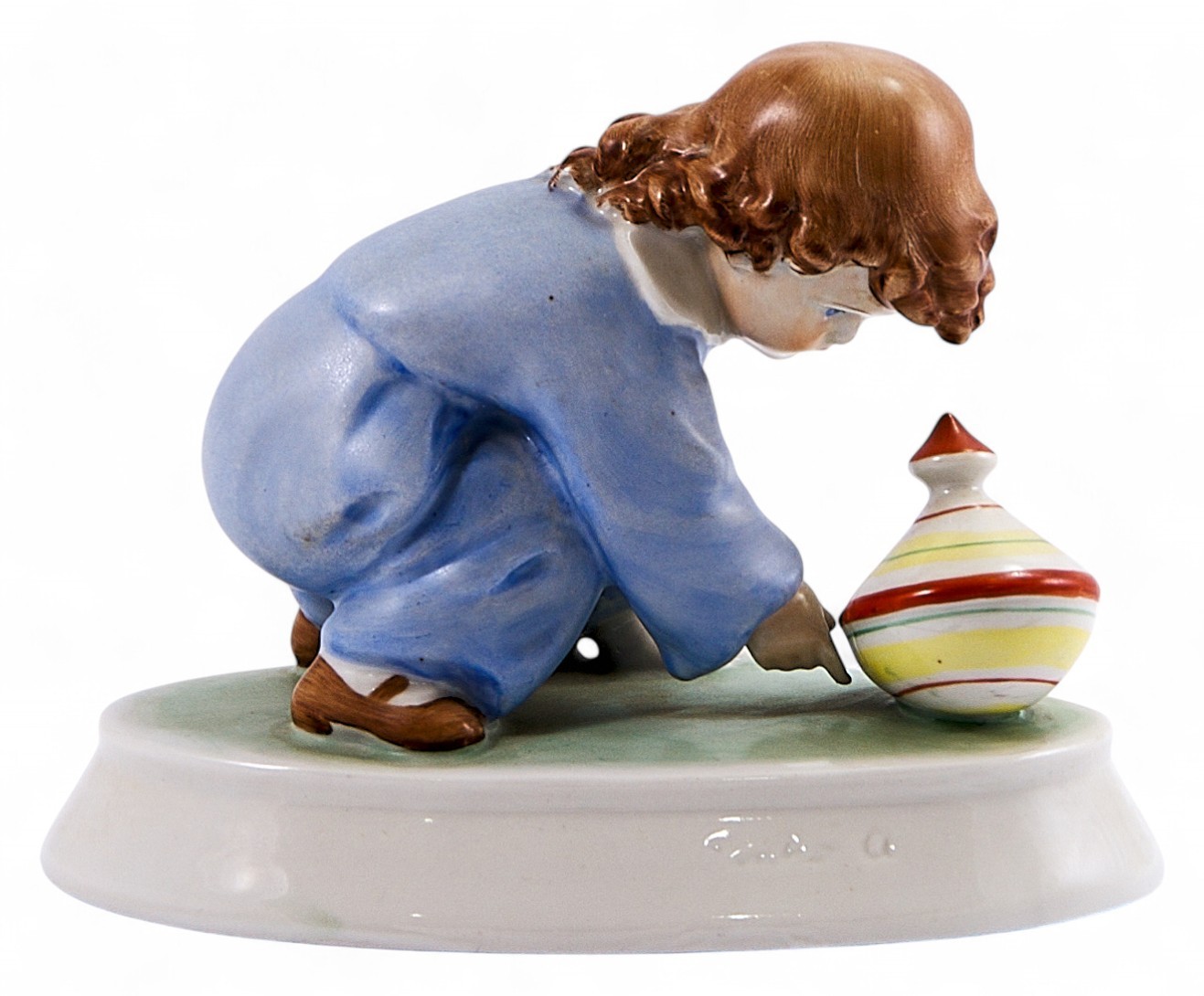 Скульптура Ребенок с волчком фарфор, Жолнаи (Zsolnay) Печ Венгрия 1970-е гг. 12 см. Печ, Венгрия 1970 гг