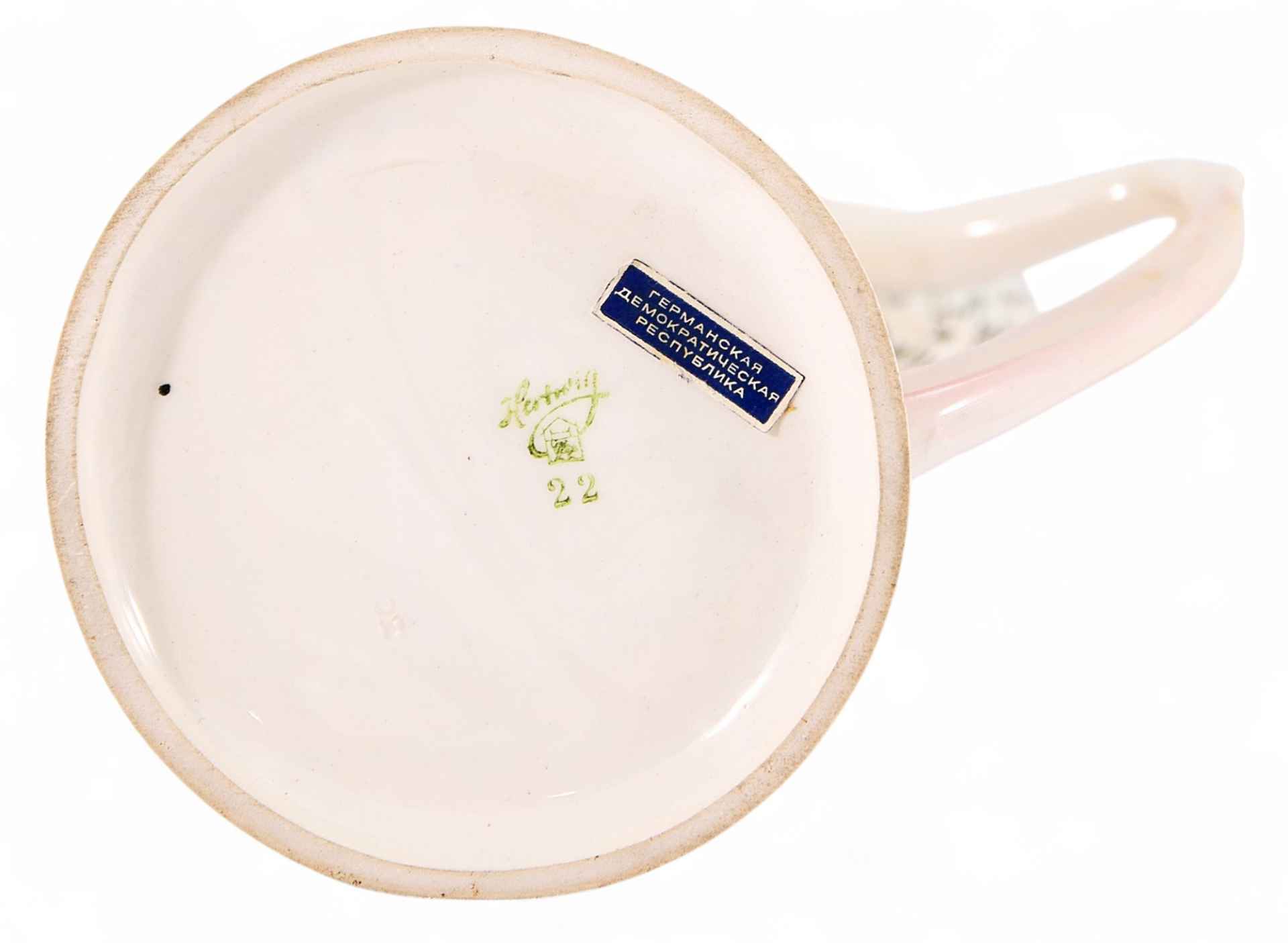Данная фигура изготовлена на фарфоровофаянсовой фабрике Hertwig в Кацухетте. Такое клеймо ставилось на изделиях фабрики в период с 1941 по 1958 годы. Фарфорово-фаянсовая фабрика Хертвиг в Кацухетте (Тюрингия). Кристоф Хертвиг и Бенджамин Байерманн в 1864 году основали компанию и вскоре начали серийное производство. В 1869 Байерманн оставил компанию и К. Хертвиг стал индивидуальным предпринимателем, который затем передал производство его сыновьям Карлу и Фридриху. Около 1890 года в компании работало уже 300 человек, 600 рабочих были заняты дома, они производили