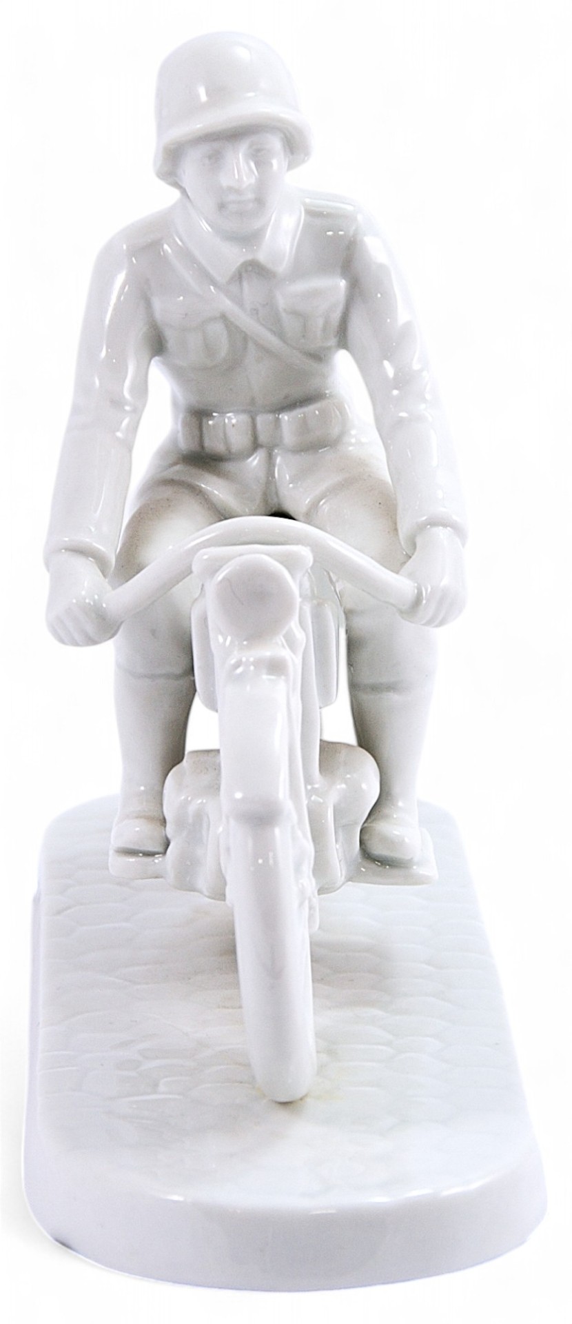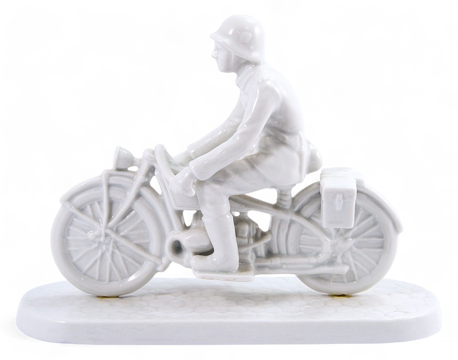 Скульптура Немецкий мотоциклист Вермахт фарфор, Neundorf Германия кон. ХХ в. 16,2x22,5 см. Neundorf, Германия конец XX- начало XXI вв