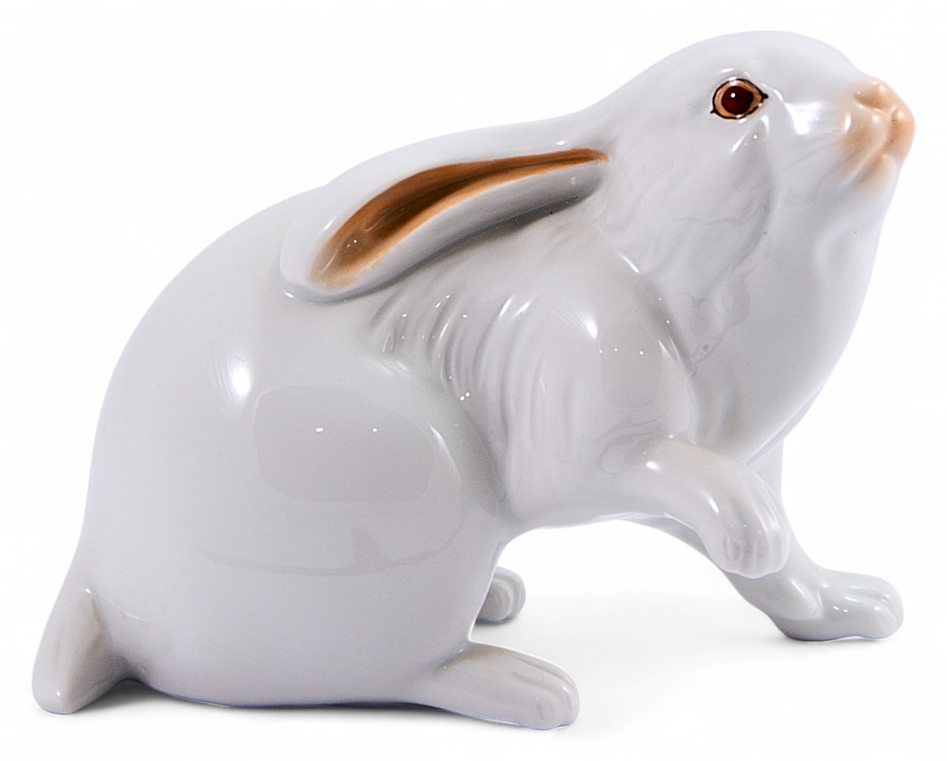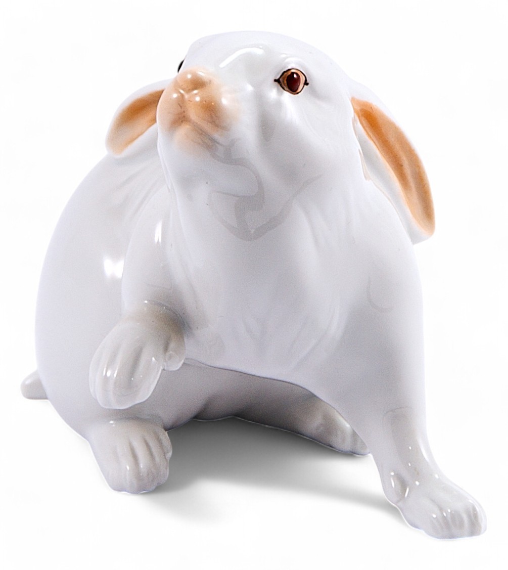 Скульптура белого зайца на основании клеймо фабрики Херенд. 1960-1966 годов. Фарфоровая фабрика Херенд (Венгрия)