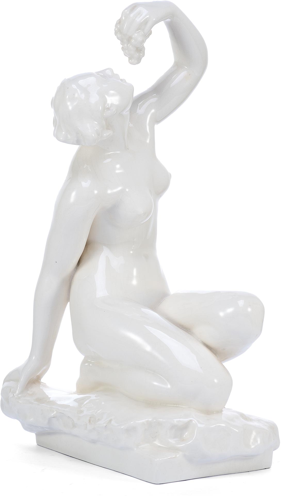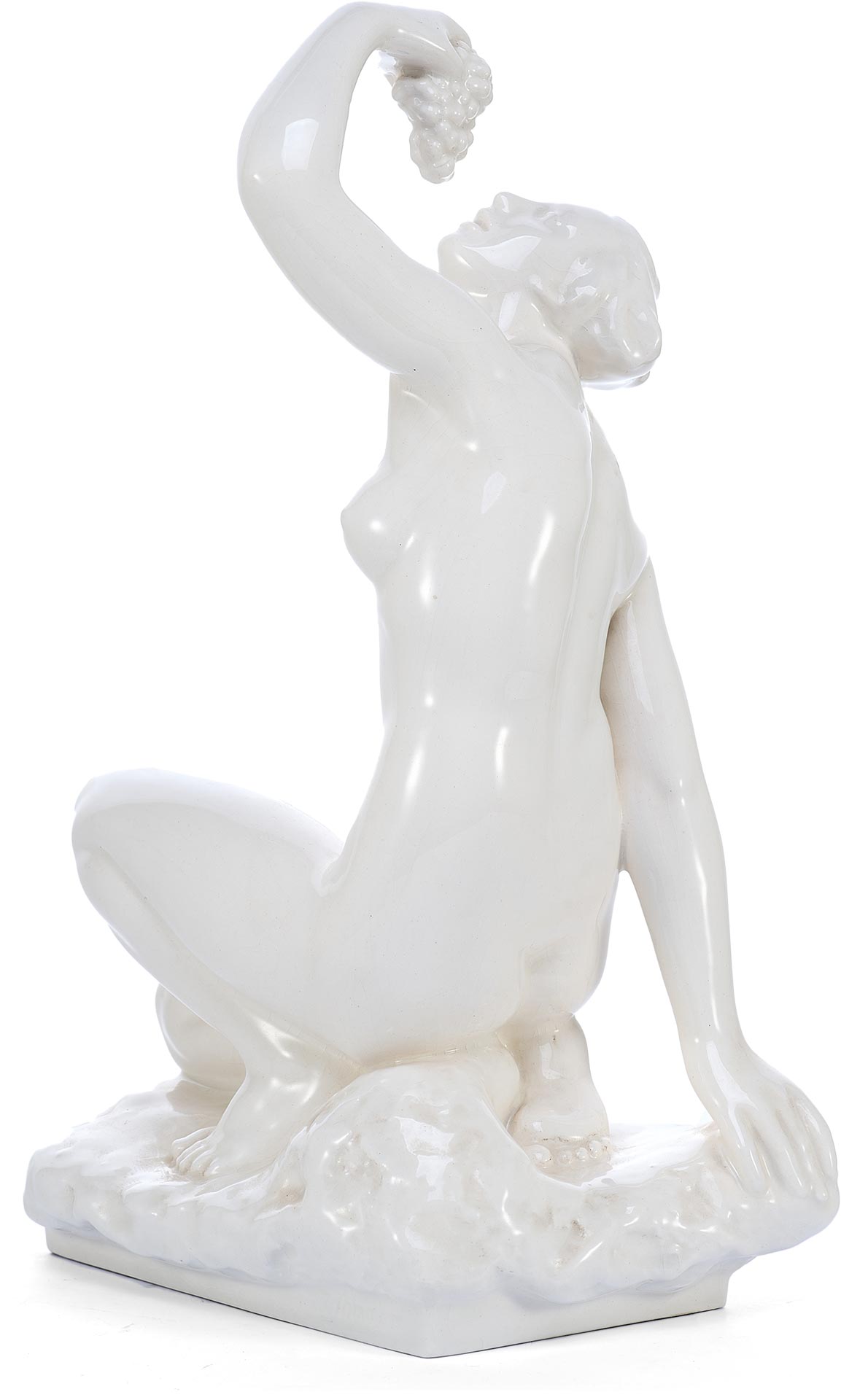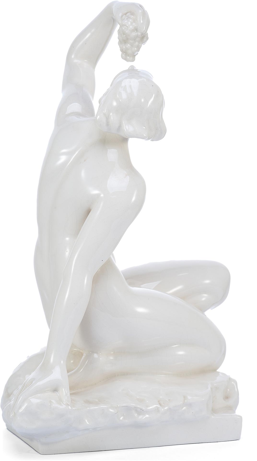 Скульптура Девушка с виноградом фаянс, авт. Ян Соммер (Jan Sommer) K.S. Bechyně Чехословакия 1920-30 гг. Н-35,5 см. Бечина, Чехословакия 1920-1930 гг