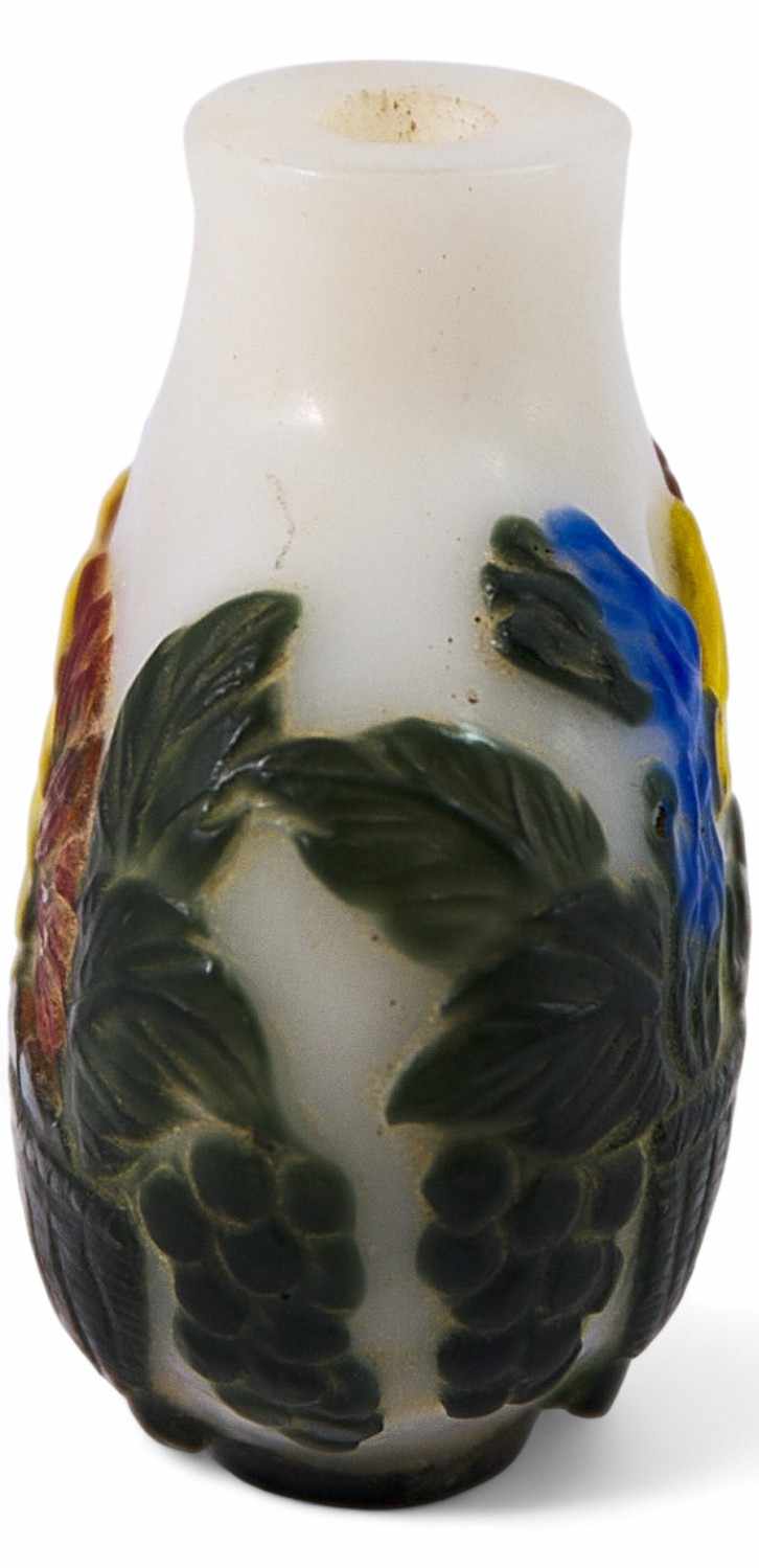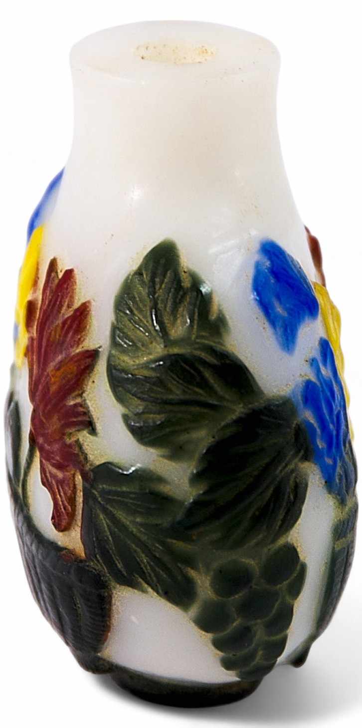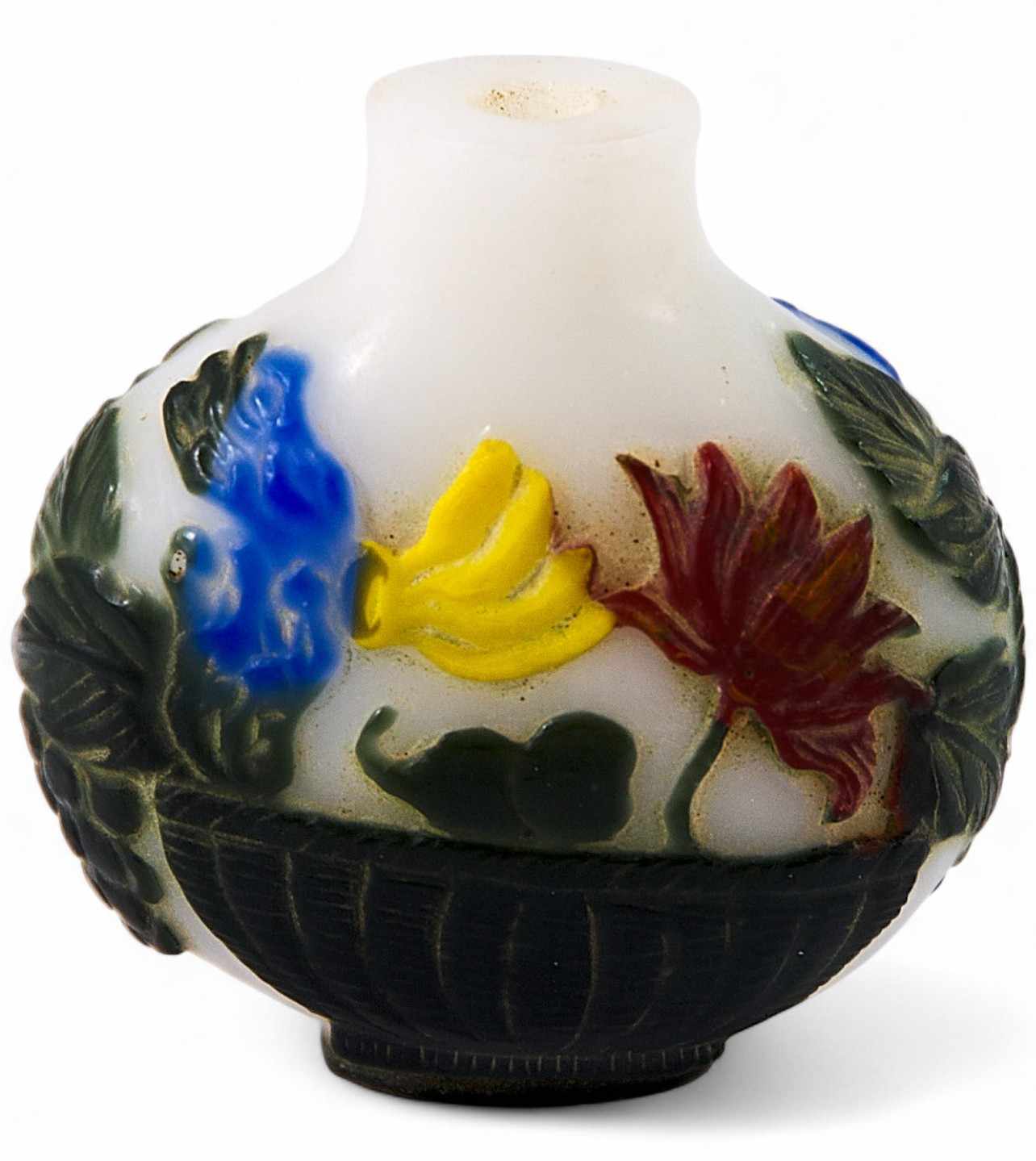 восточные мотивы шинуазри с использованием экзотических растительных элементов, расписанных цветными эмалями. Подобные миниатюрные флакончики появились на Востоке сравнительно недавно, около трех веков назад, и практически сразу же нашли своих собирателей как на родине, так и в Европе - этому способствовало разнообразие форм, материалов и декора.