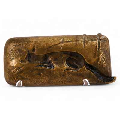 Панно-пепельница «Лиса у изгороди», изготовленная в конце XIX – начале XX века, является ярким примером кабинетной бронзовой пластики. Это направление декоративно-прикладного искусства было особенно популярно в Европе, в частности, в 1920–1930-х годах. Представленный экземпляр выполнен из бронзы методом литья и имеет характерное для своего периода художественное оформление.