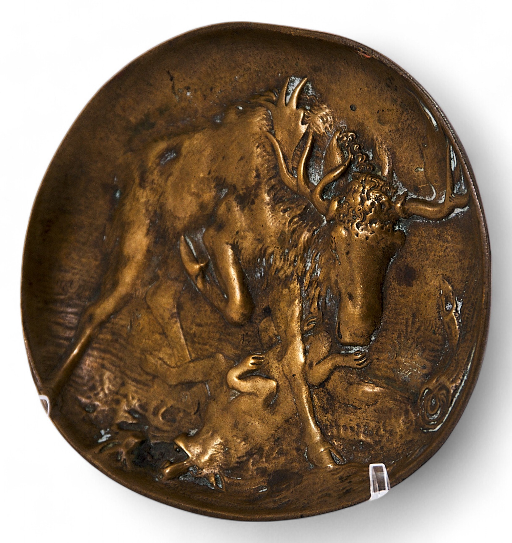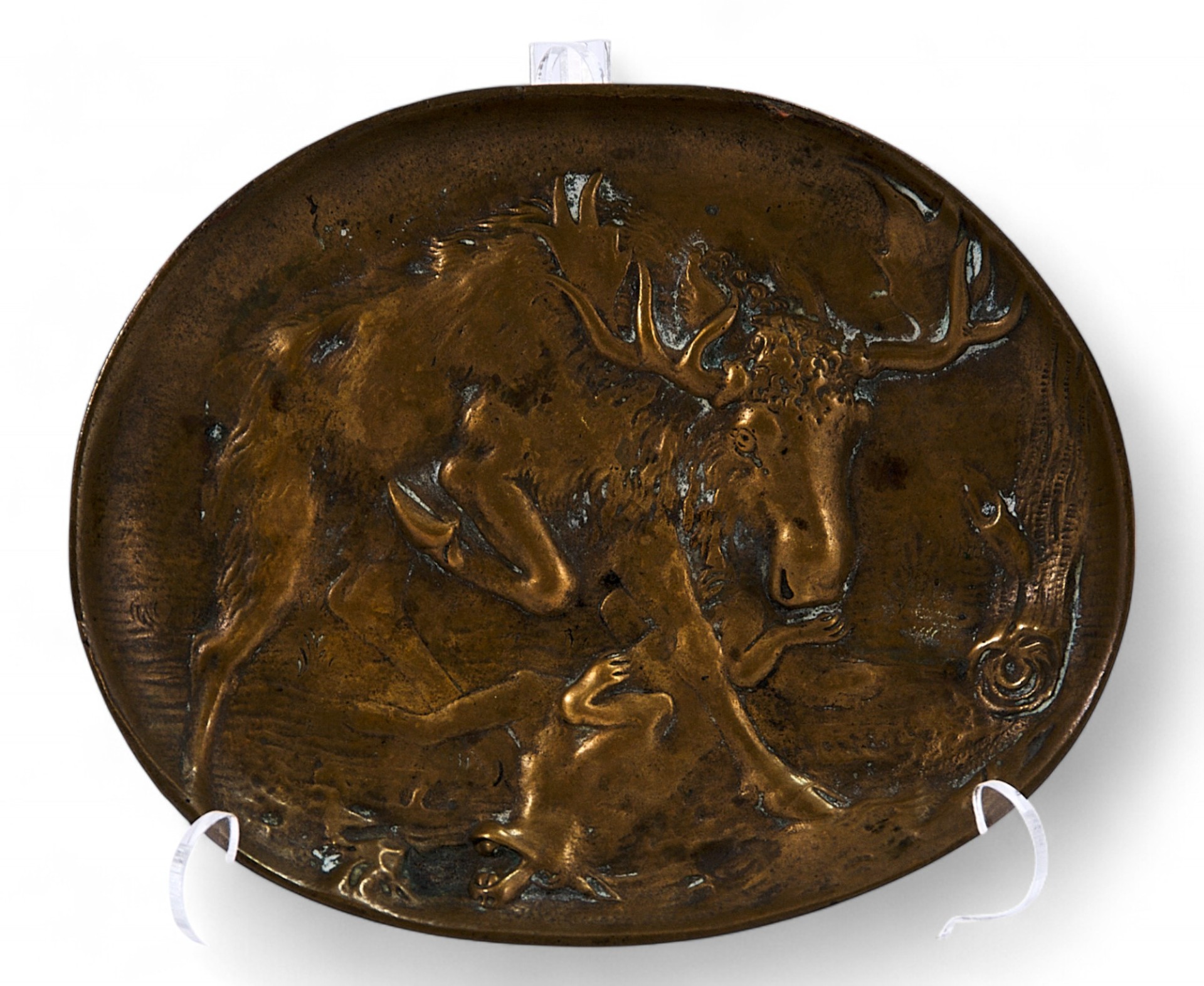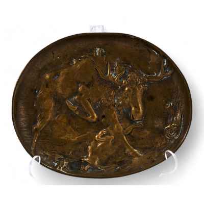 Панно-пепельница «Схватка лося и волка» Берндорф, Австрия конец XIX — начало XX вв