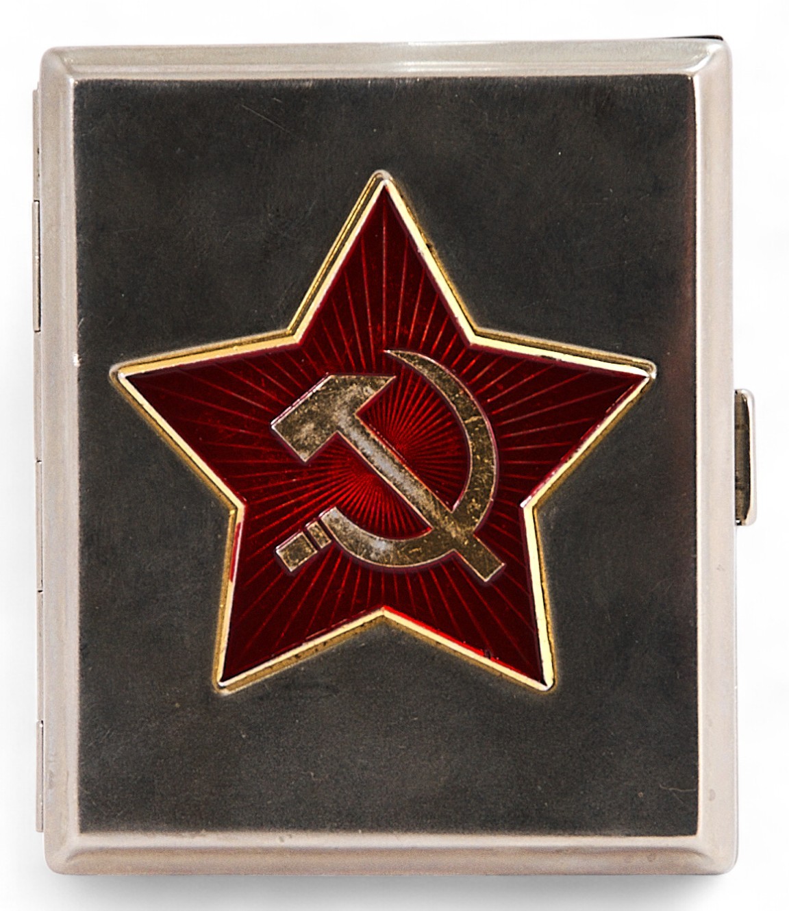 Портсигар Звезда Серп и Молот металл, 9,5x8,2 см. СССР