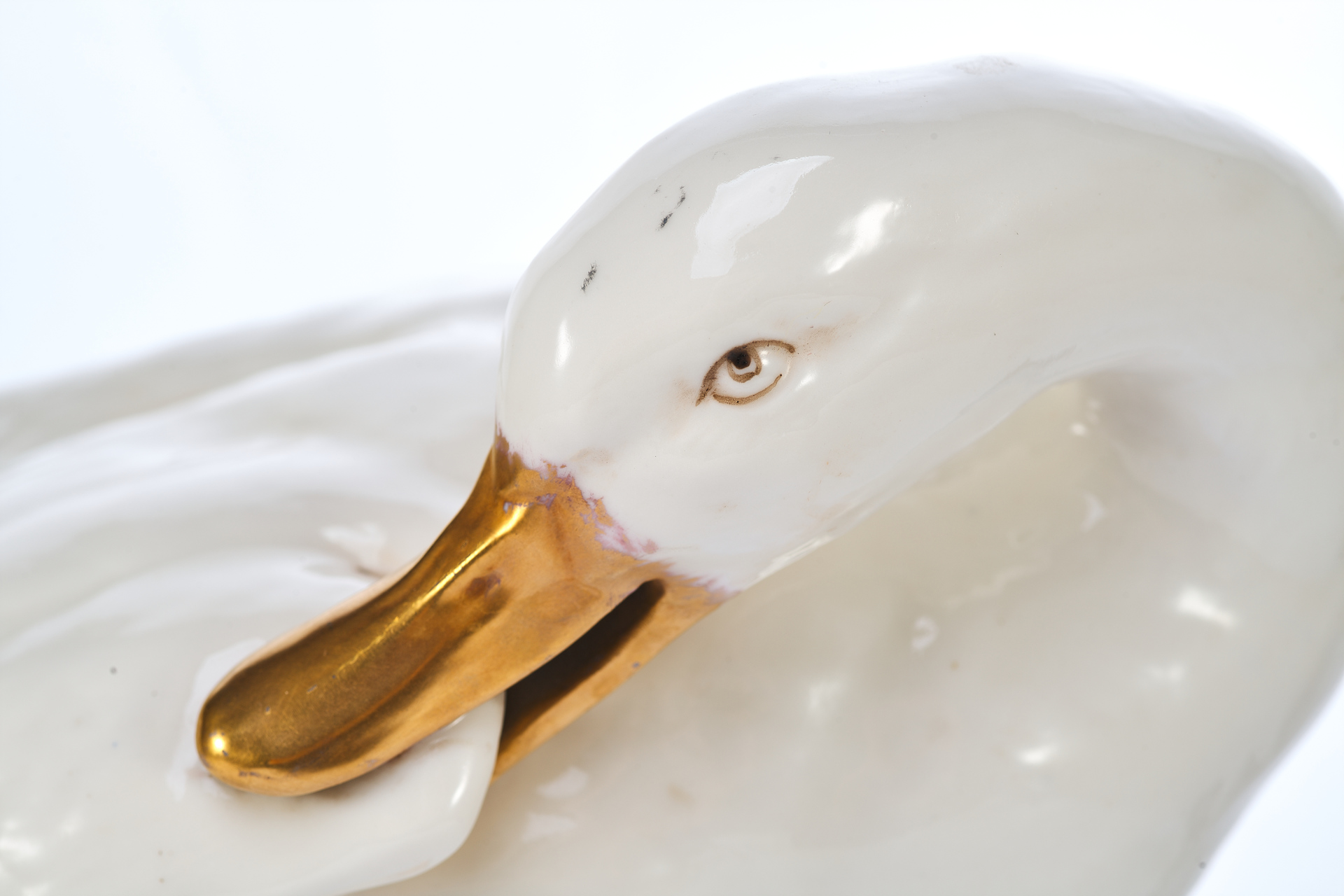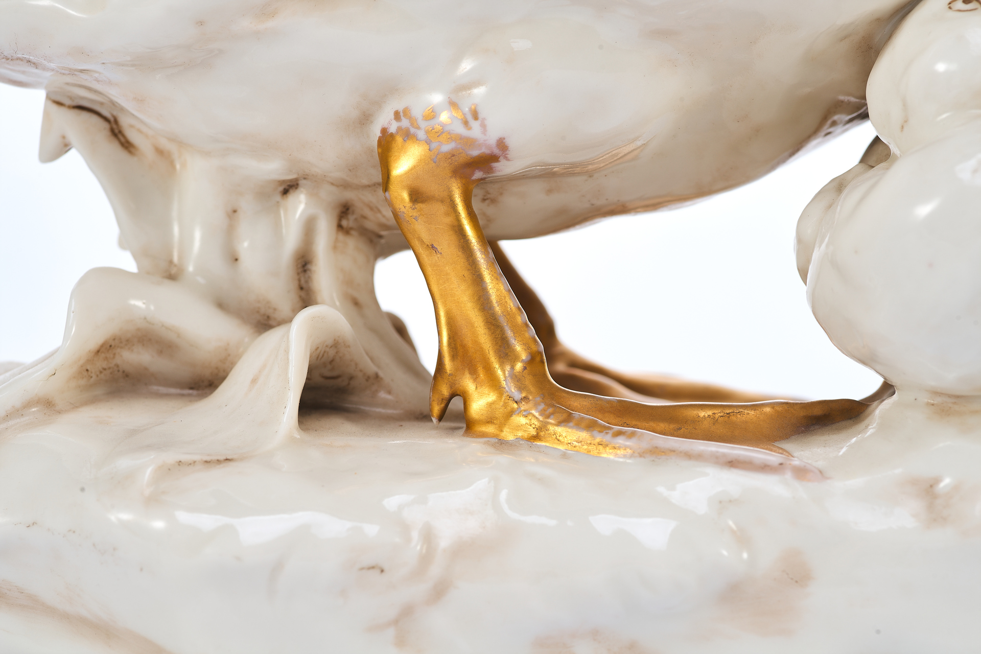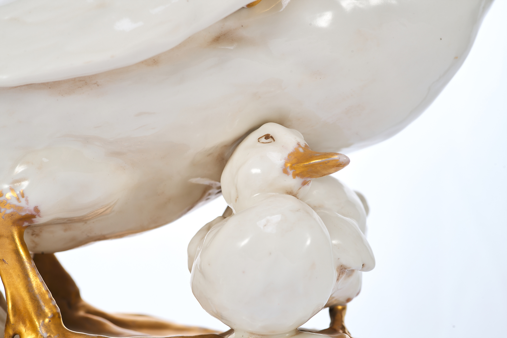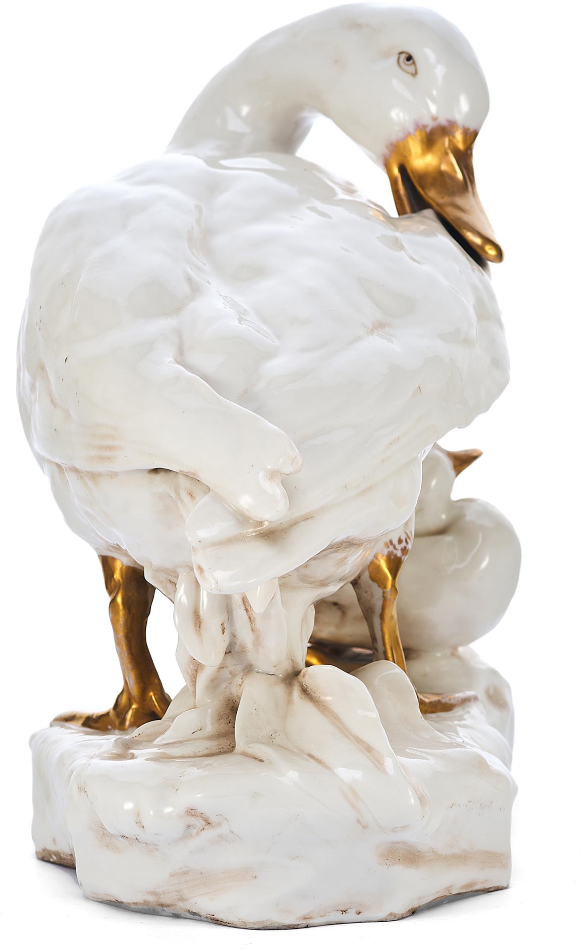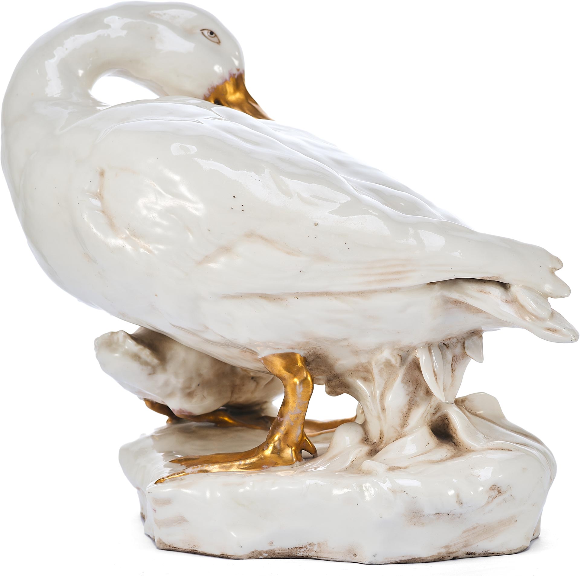 Утка укрывающей собою утенка. На основании фигуры клеймо изготовителя - фабрики Дрессель, Кистер и К (Германия), периода 1905-1922 гг. Пассау, Бавария ( Германия) Фабрика твердого фарфора, принадлежавшая фирме «Дрессель, Кистер