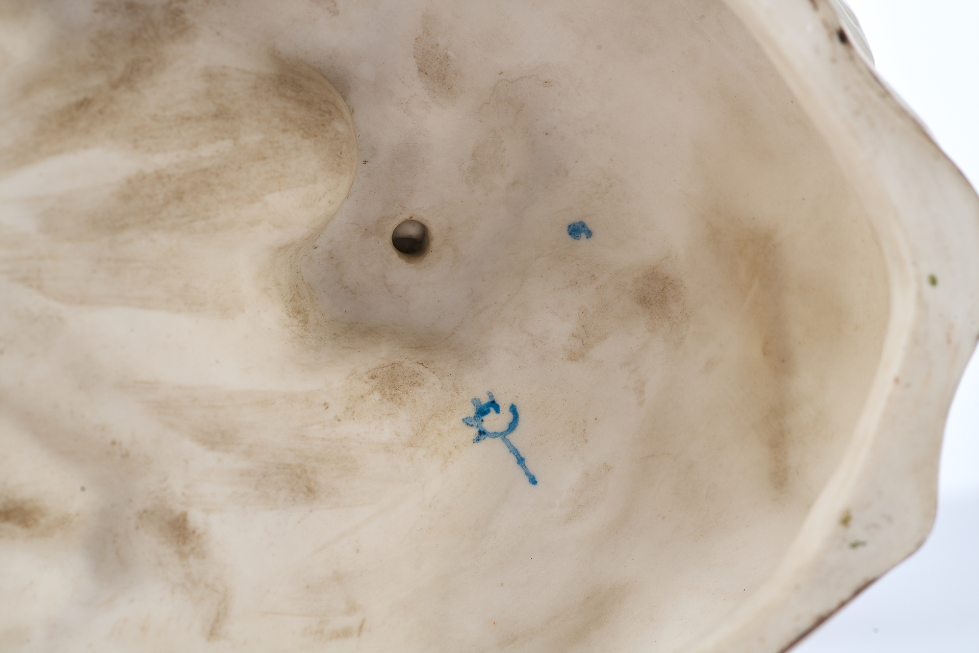 и К°», существовала с 1840 года. С 1922 года фабрика функционировала как отделение фолькштедской мануфактуры, а в 1942 году была закрыта. Основу ассортимента составляли декоративный фарфор, скульптура, предметы церковного обихода, куклы, безделушки. Выпускались также репродукции хёхсткой скульптуры по старым формам, приобретенным фабрикой в конце XIX в. По своим художественным признакам предмет относится к типичной продукции фабрики по изготовлению фарфора в Пассау 1905-1922 гг.