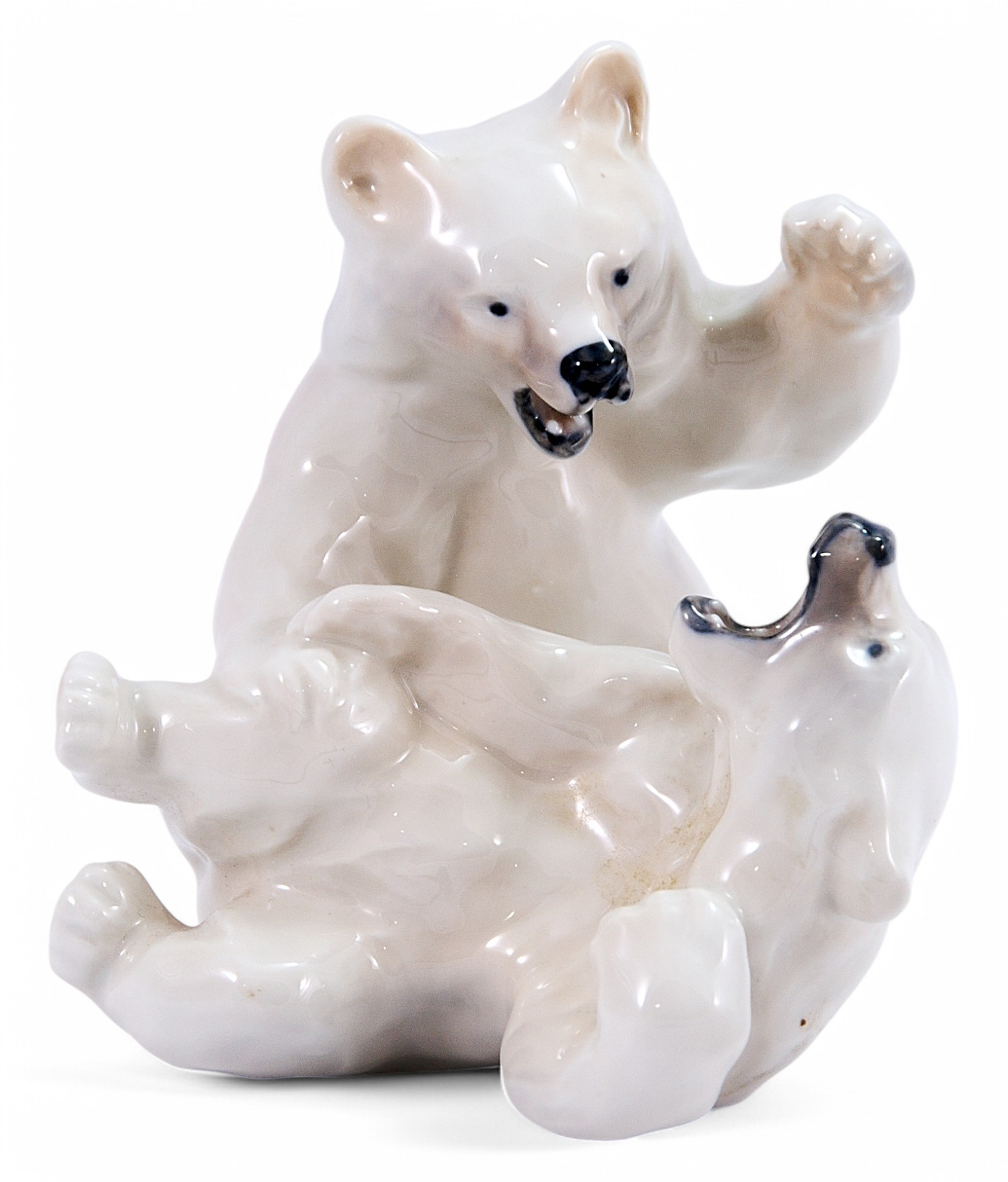 Скульптурная композиция Два медведя фарфор, Royal Copenhagen Factory Дания 1923-35 гг. Н-13,5 см. Royal Copenhagen Factory, Копенгаген, Дания 1923-1935 гг