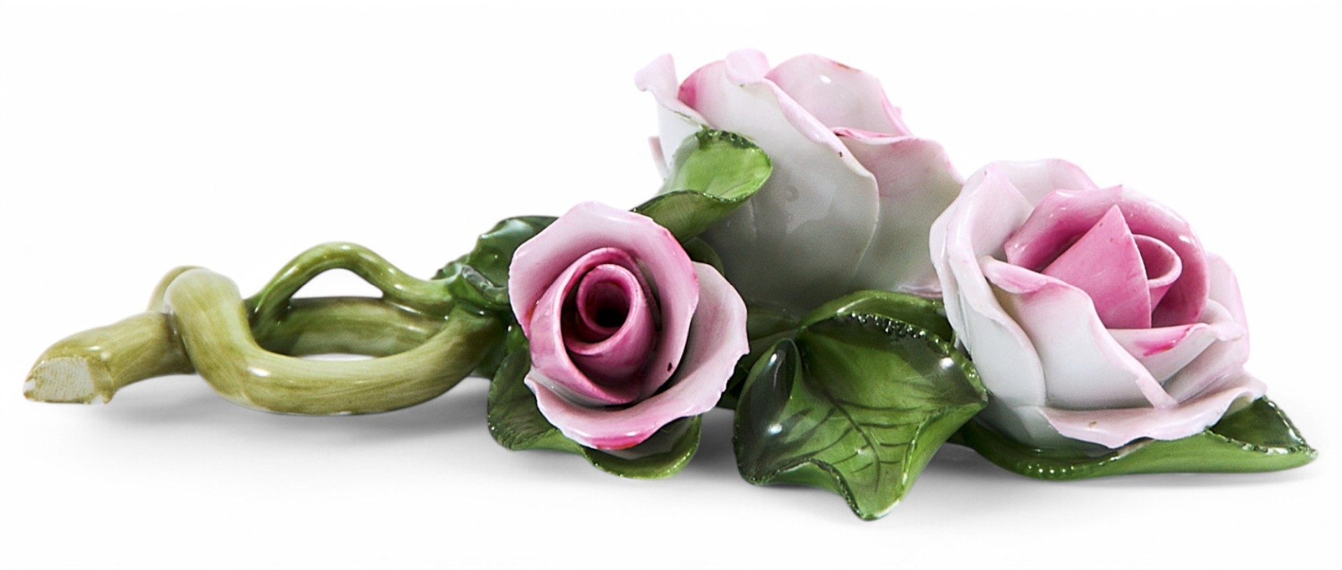 Скульптура в виде ветки розы. На основании клеймо фарфоровой фабрики Херенд (Herend) ставившееся с 1960 по 1986-е годы. Фарфоровая фабрика Херенд (Венгрия) 1826 году, в небольшой деревушке Херенд (Herend), расположенной на склоне
