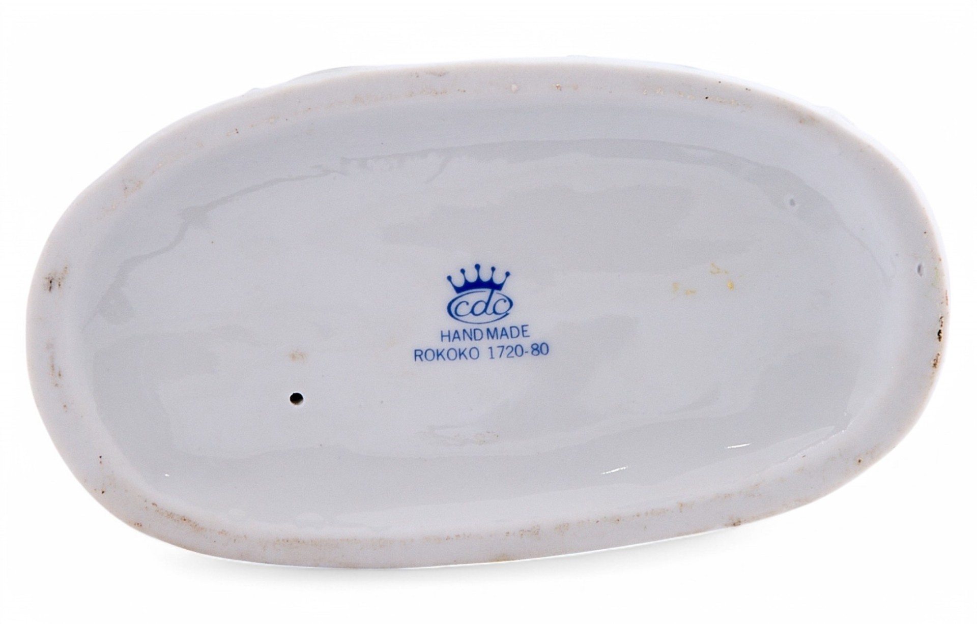 На дне статуэтки имеется клеймо (синее печатное надглазурное): овале под зубчатой короной аббревиатура "cdc", ниже