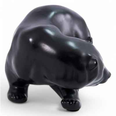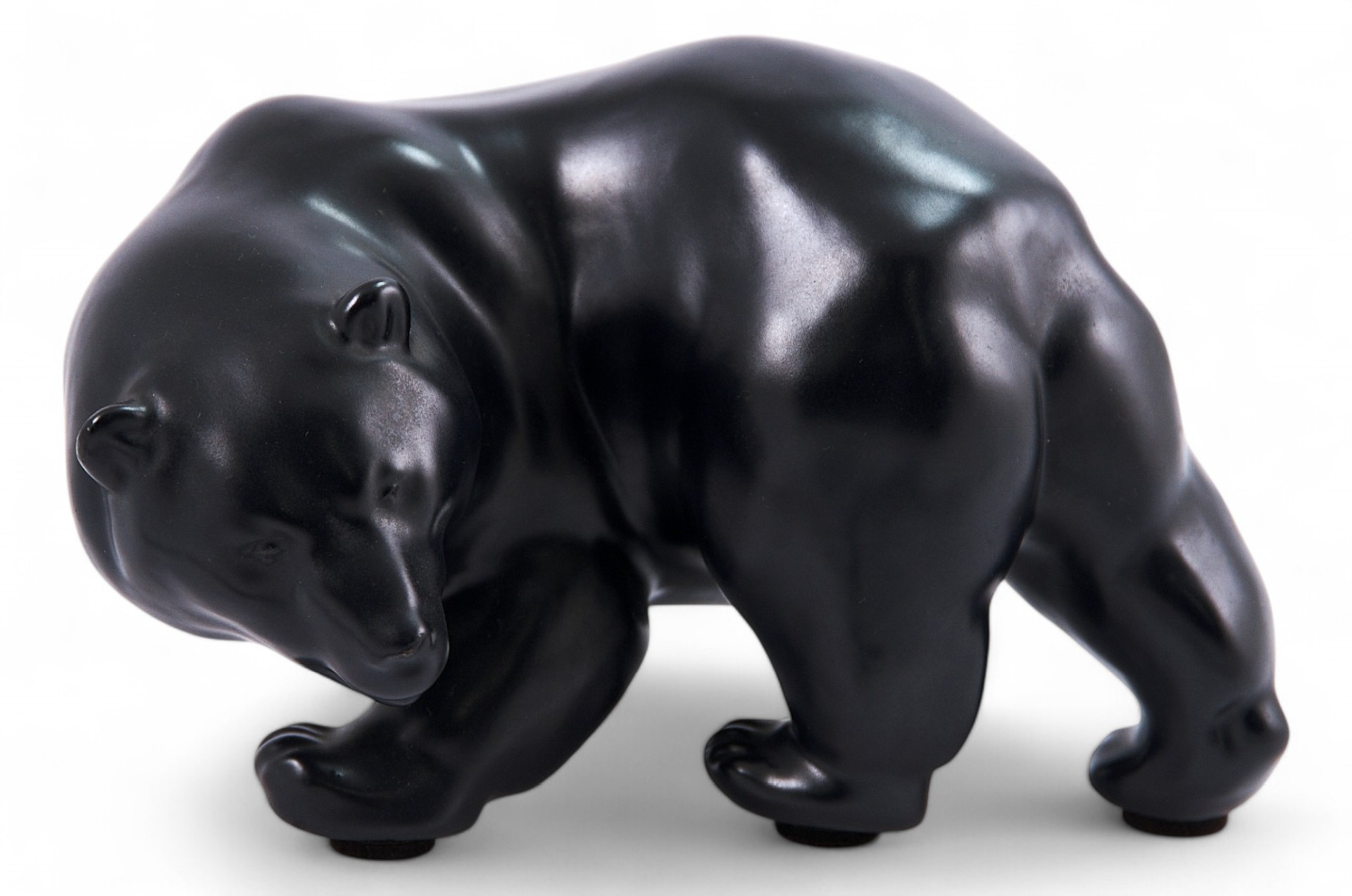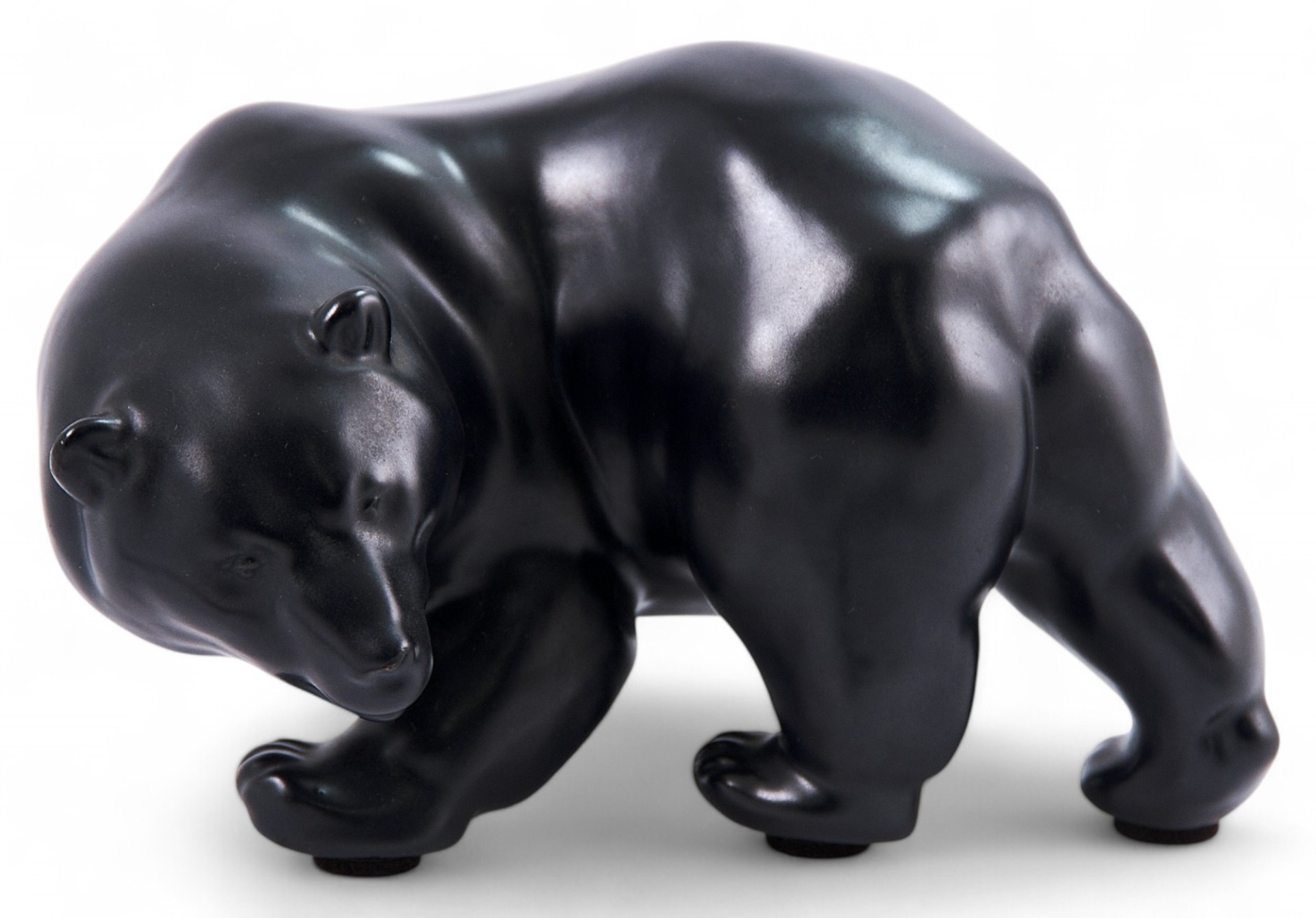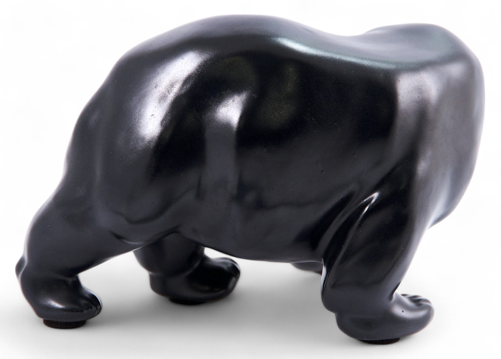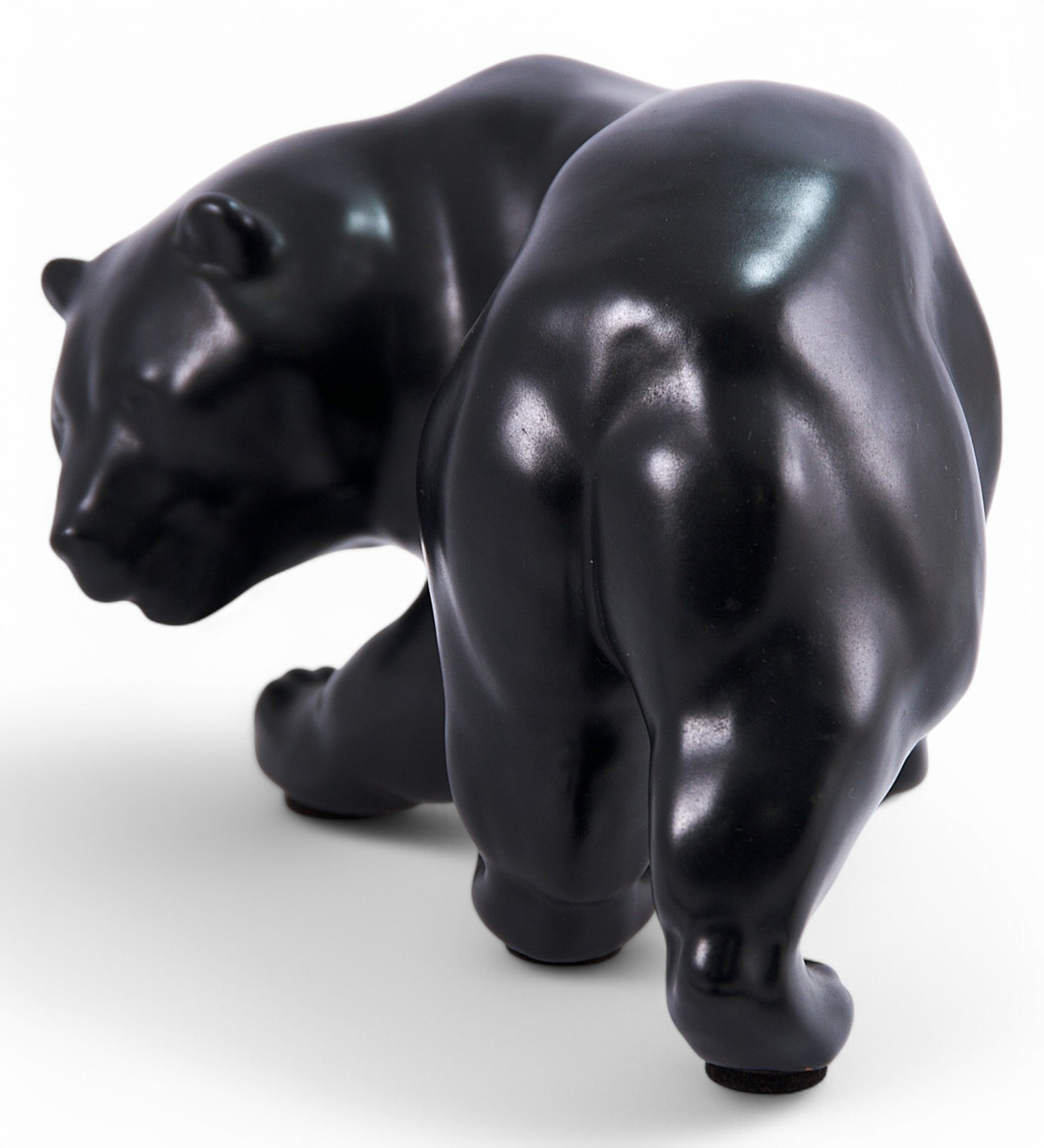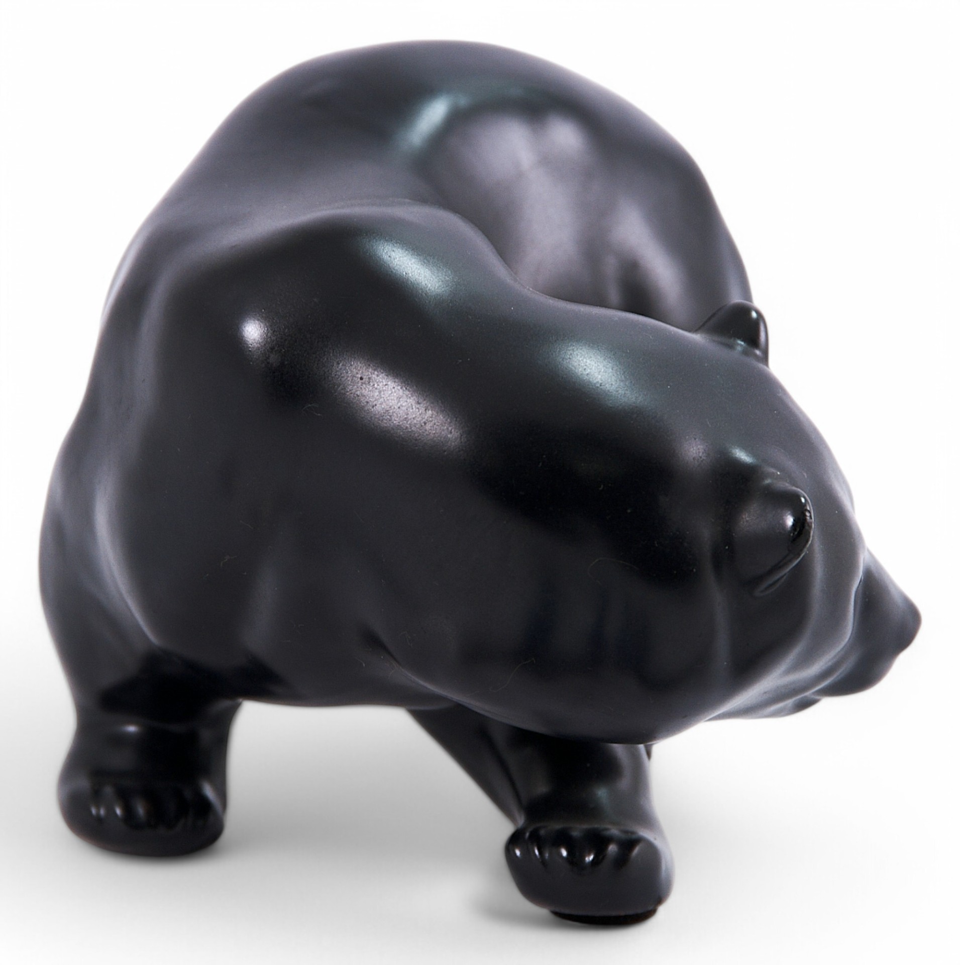 Скульптура Медведь идущий черный фаянс, Keramos Австрия втор. пол. ХХ в. Н-12 см. Австрия середина XX века