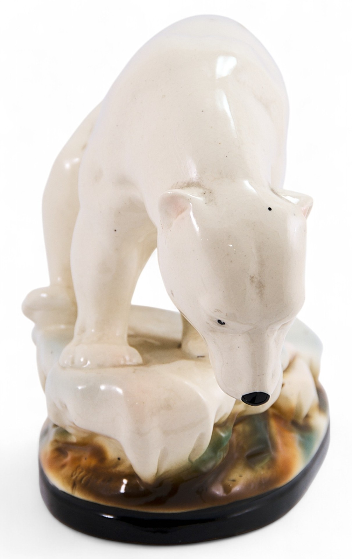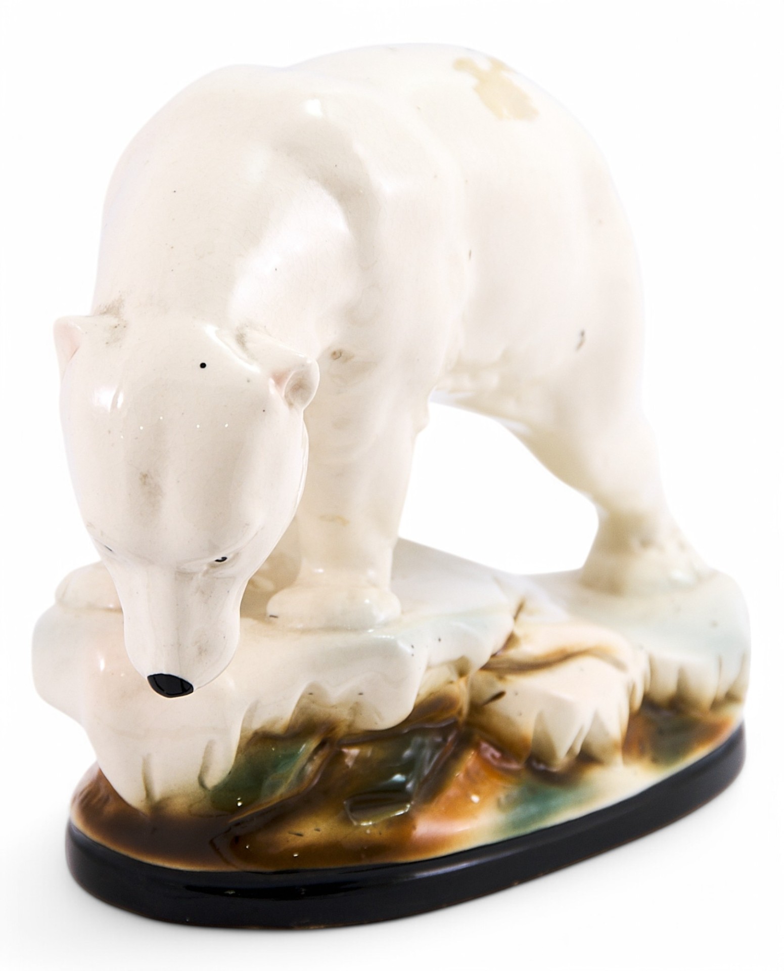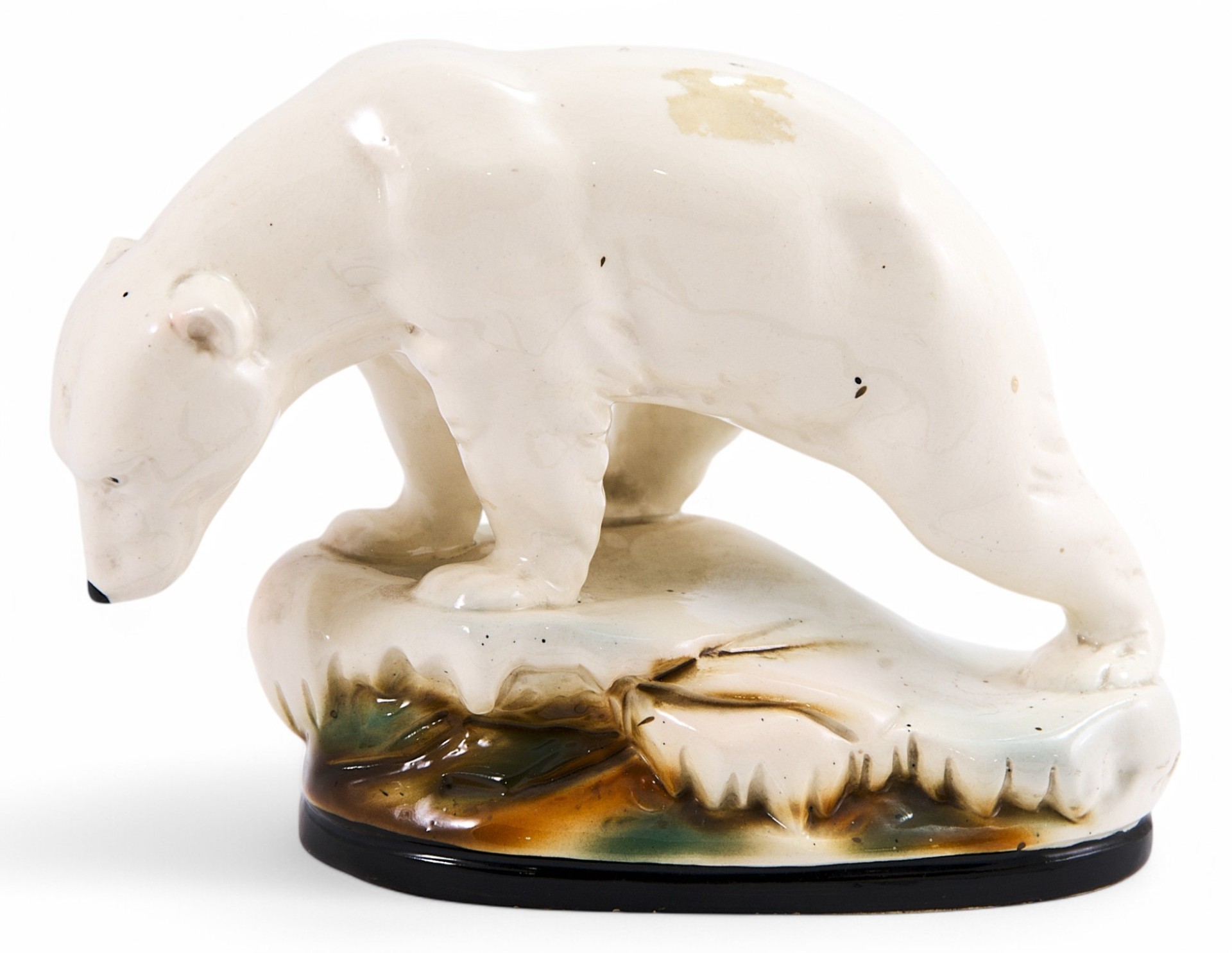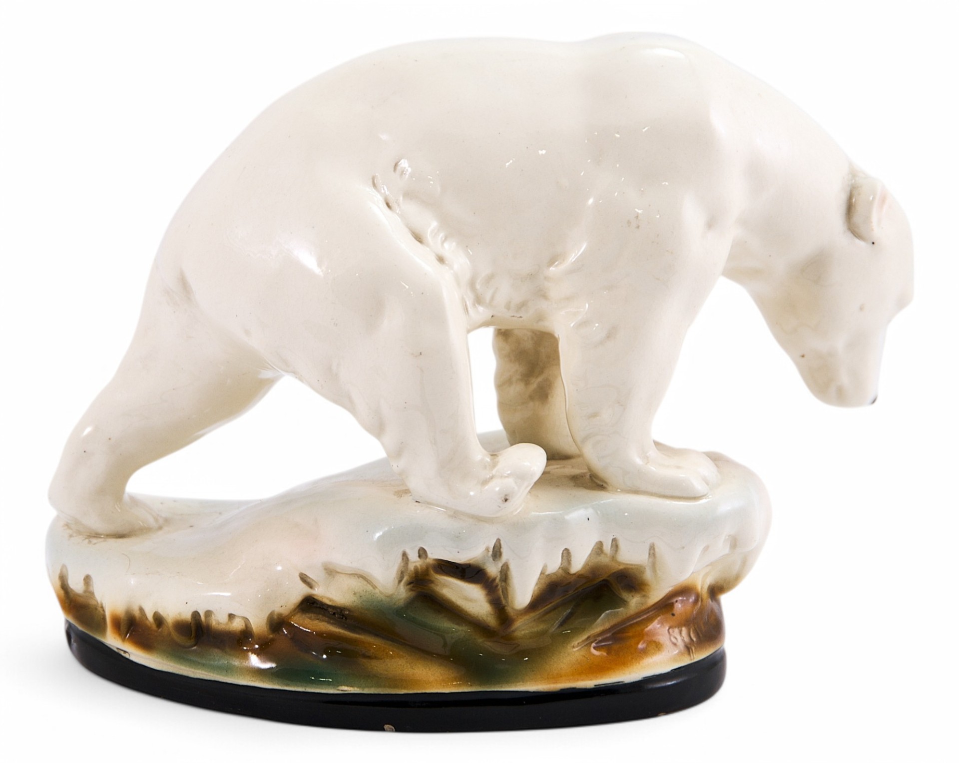 Скульптура Полярный медведь фаянс, фабр. бр. Мехнеров Чехословакия сер. ХХ в. Н-24,5 см. фабрика братьев Мехнеров, Чехословакия середина ХХ века