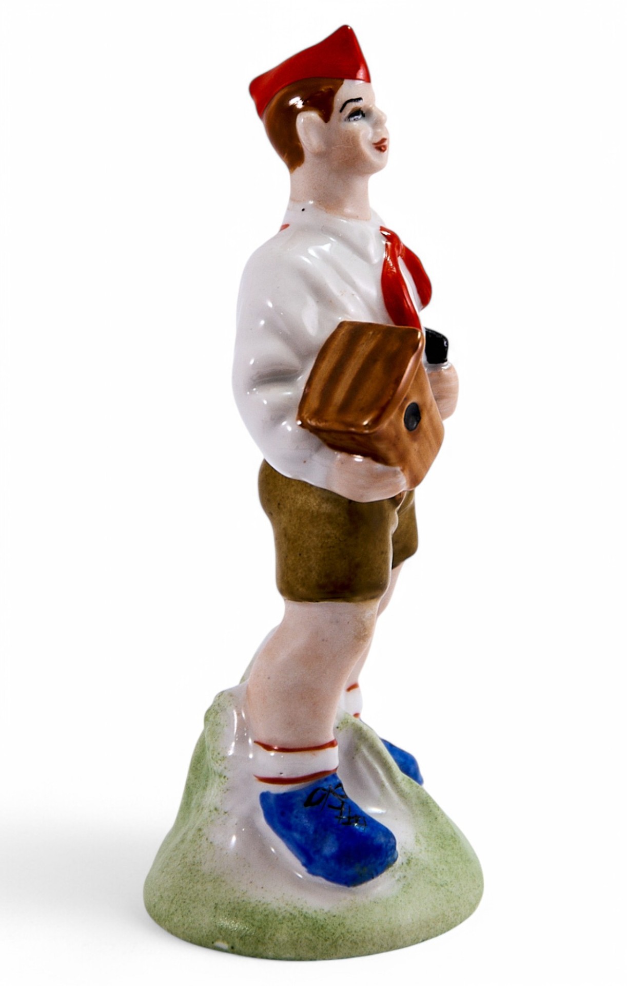 Скульптура Школьник со скворечником фарфор, Коростень кон. ХХ в. Н-16,6 см. Коростенский фарфоровый завод конец XX начало XXI вв