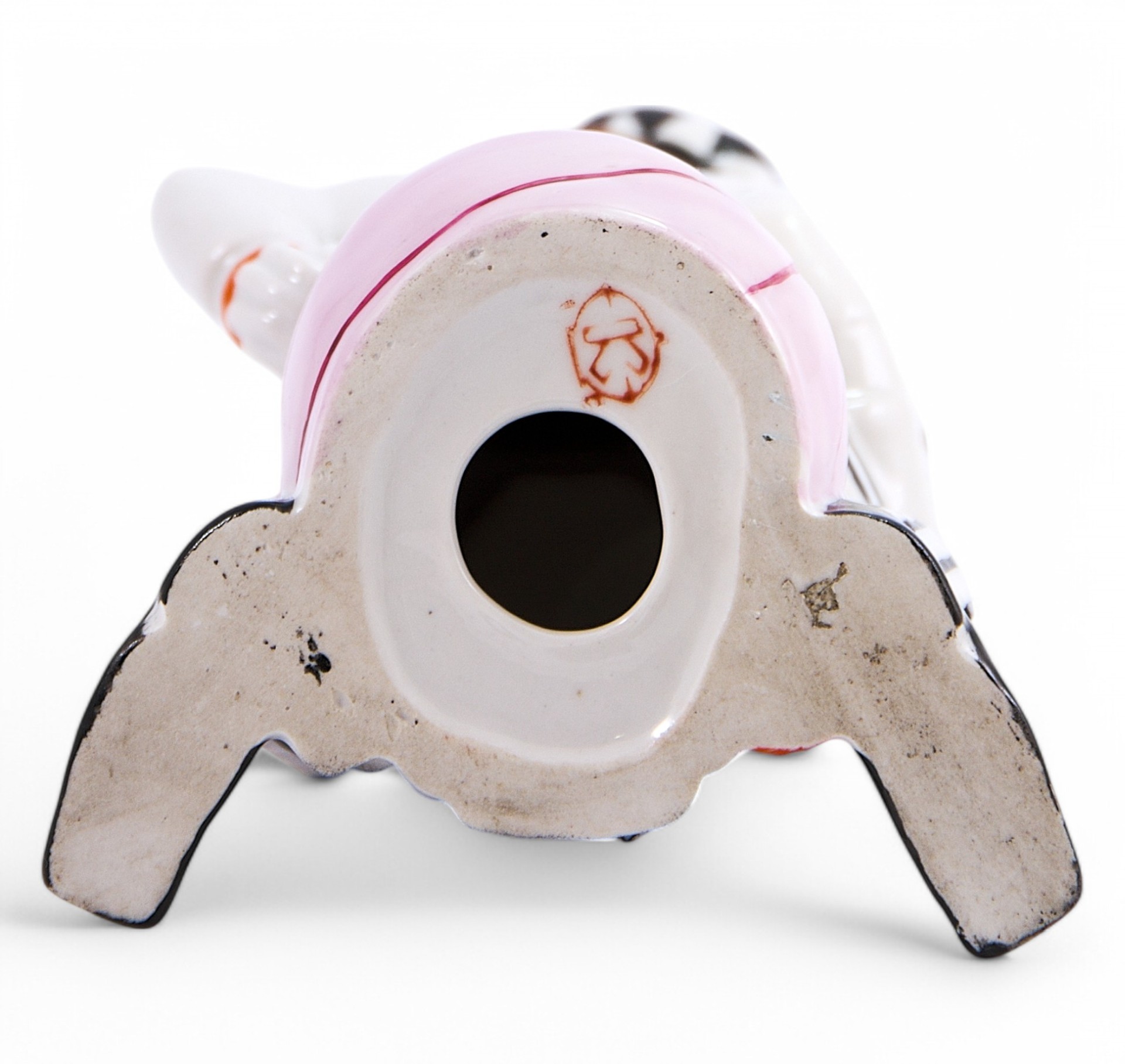 Современная авторская скульптура представляющая советского клоуна О.К. Попова, держащего правой рукой олимпийского мишку символ Олимпийских игр 1980г. в Москве. На основании скульптуры клеймо Коростенского фарфорового завода