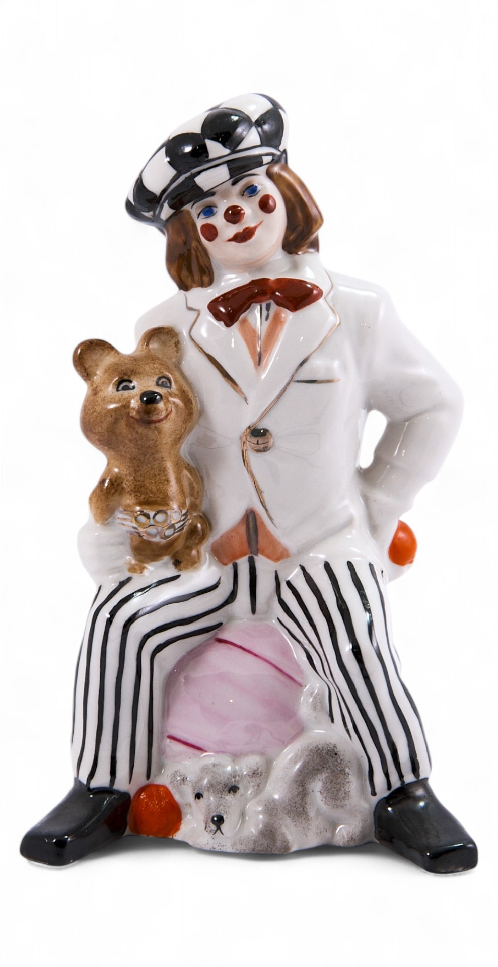 Скульптура Клоун О. Попов с олимпийским мишкой фарфор, Коростень кон. ХХ в. Н-19 см. Коростенский фарфоровый завод конец XX начало XXI вв