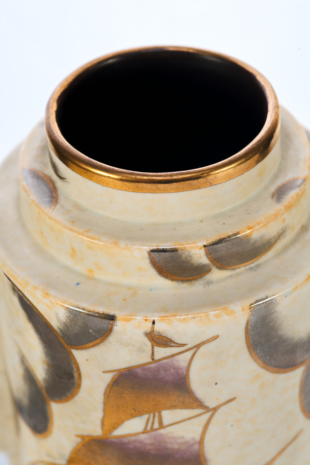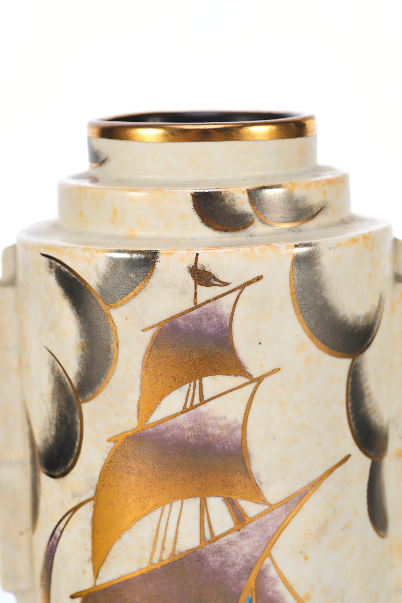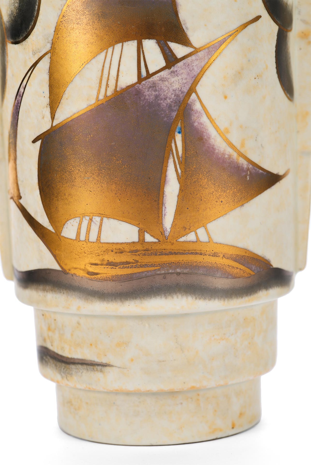 Ваза в стиле ар-деко. На вазе изображен парусный корабль под облаками. На основании вазы клеймо изготовителя керамической художественной мануфактуры Royal Boch - Keramis, 1920-1930-х гг. Royal Boch - Keramis (Бельгия)