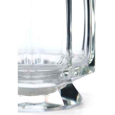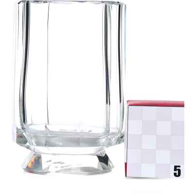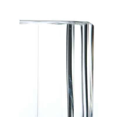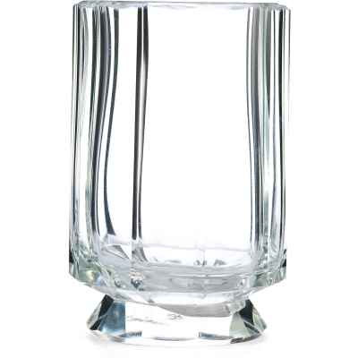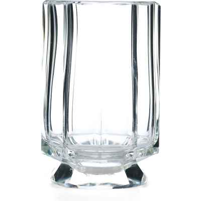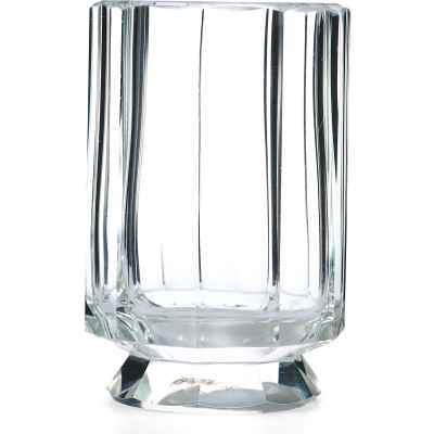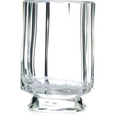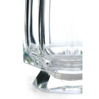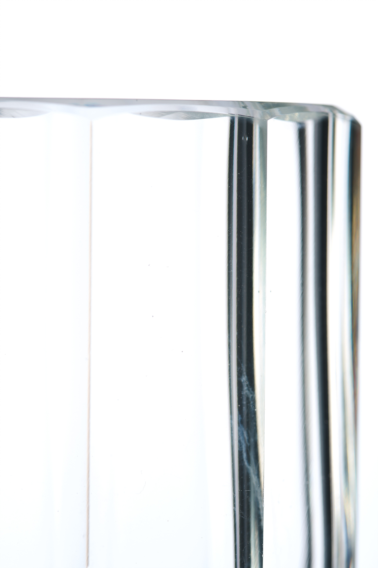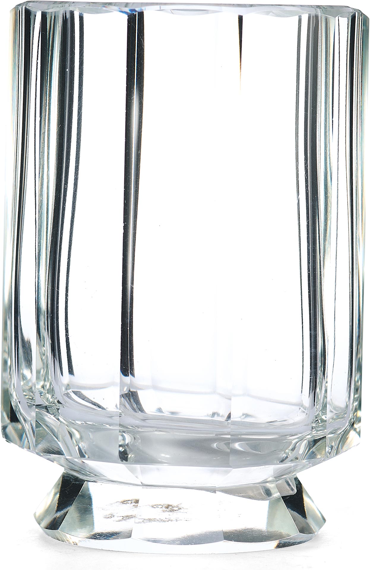 Эта ваза представляет собой образец европейского стекольного искусства XX века, отличающийся строгой геометрией и изысканной прозрачностью. Выполненная из толстостенного стекла, она имеет гранёные стенки и массивное основание, что придаёт ей ощущение устойчивости и монументальности.