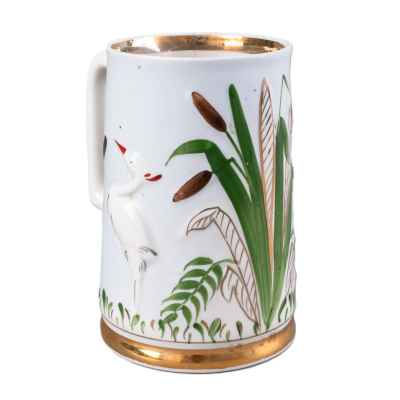 Фаянсовая кружка для холодных напитков: кваса, морса. Кружка украшена росписью в виде растительной символики. Даты «1917- 1967» говорят о том, что кружка выпускалась к празднованию «50-летия Советской Власти» На дне клеймо «ЗиК» - Конаковский фаянсовый завод. Конаковский фаянсовый завод — одно из старейших предприятий фарфорово-фаянсовой промышленности, основанное в 1809 году Ф.-Х. Бриннером в селе Домкино Тверской гу бернии. Сначала дела завода пошли в гору, он славился своей высококачественной продукцией. Вскоре его выкупил аптекарь А. Я. Ауэрбах (1796—1846). Фабрика стала получать заказы императорской фамилии. После смерти А. Я. Ауэрбаха, его наследники не смогли вести дела фирмы удачно. Они попытались модернизировать производство, вложили в это большие деньги и прогорели. Выкупил завод в 1870 году' со всеми его долгами предприниматель и заводчик Матвей Кузнецов, который также занимался фарфоровым производством. Фамилия Кузнецова и название села — случайное совпадение. Оно было названо так еще до появления там фаянсового завода, по имевшимся там кузнечным мастерским. В 1889 году вошёл в «Товарищество производства фарфоровых и фаянсовыхизделий М. С. Кузнецова». Ассортимент стремительно расширялся, завод стал производить помимо фарфора еще фаянс и майолику. Продукция была самой разнообразной: от сантехники до сервизов. Кузнецовский фарфор стал знаком качества.